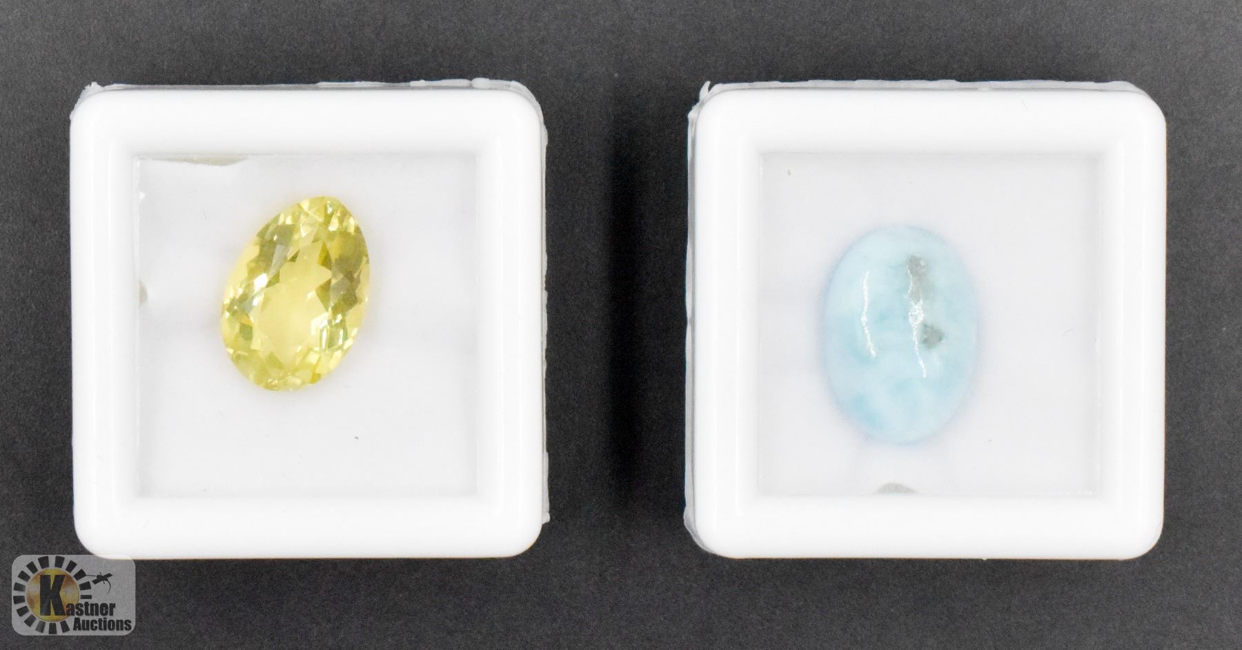 #7-NATURAL BLUE LARIMER 6.09CT,YELLOW QUARTZ 4.62C