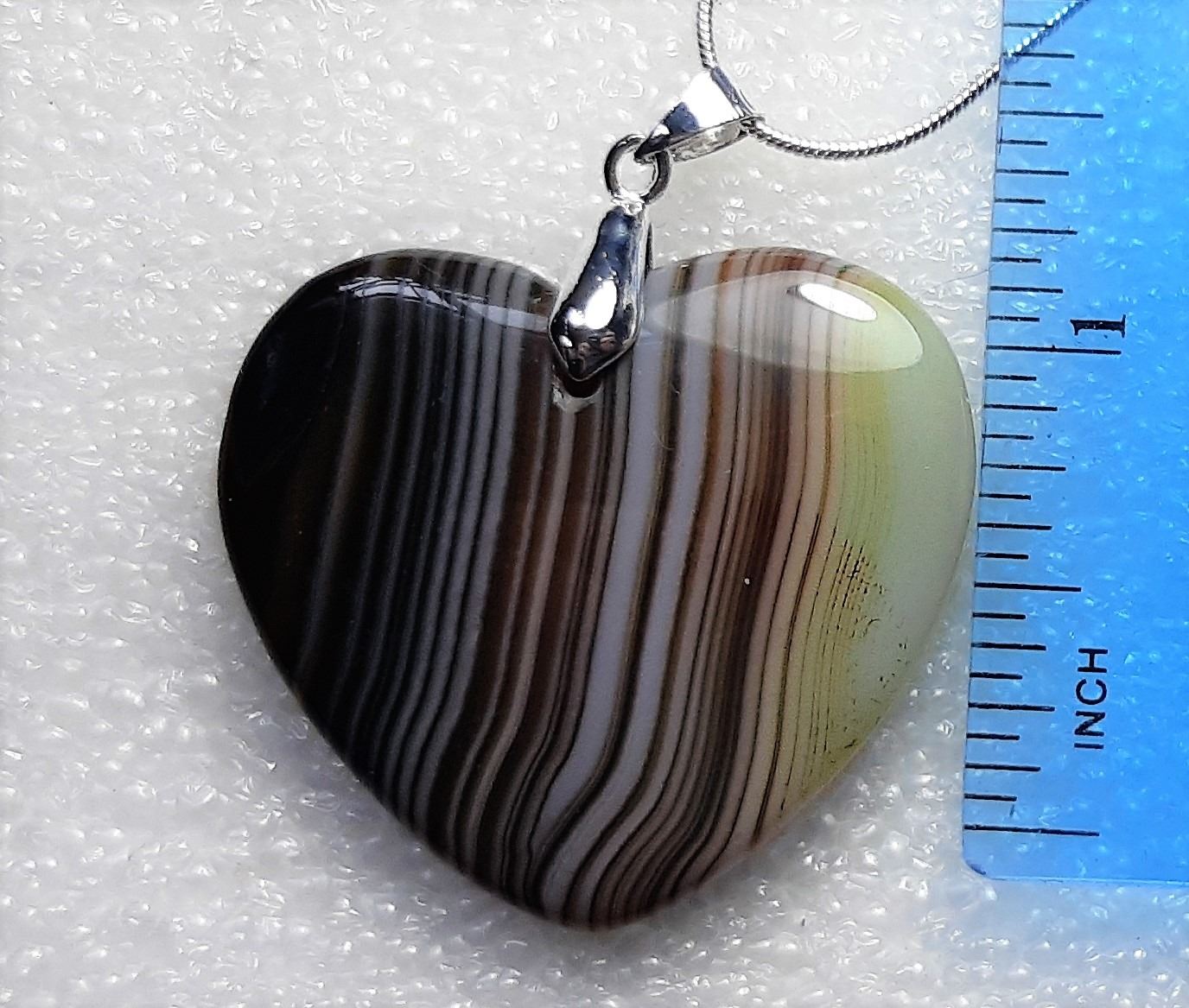 ON 925 STAMPED 22" SNAKE CHAIN, STRIPES ON PENDANT GO FROM BLACK TO BROWN TO PALE GREEN, WHEN HELD UP TO THE LIGHT STONE IS TRANSLUCENT. JEWELRY