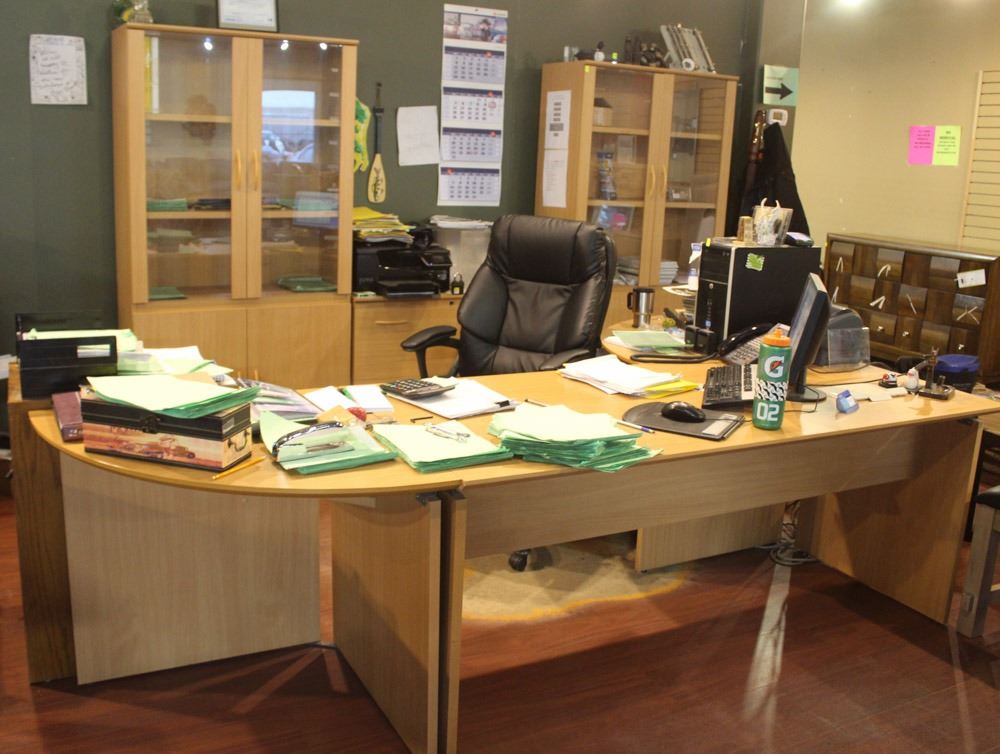 CAN'T BE PICKED UP UNTIL FRIDAY NOVEMBER 23 AFTER 1:00PM INCLUDES: 3 PIECE DESK,DRAWER CABINET, 2 QURIO, LATERAL FILING CABINET.FLOOR DISPLAY, AS IS