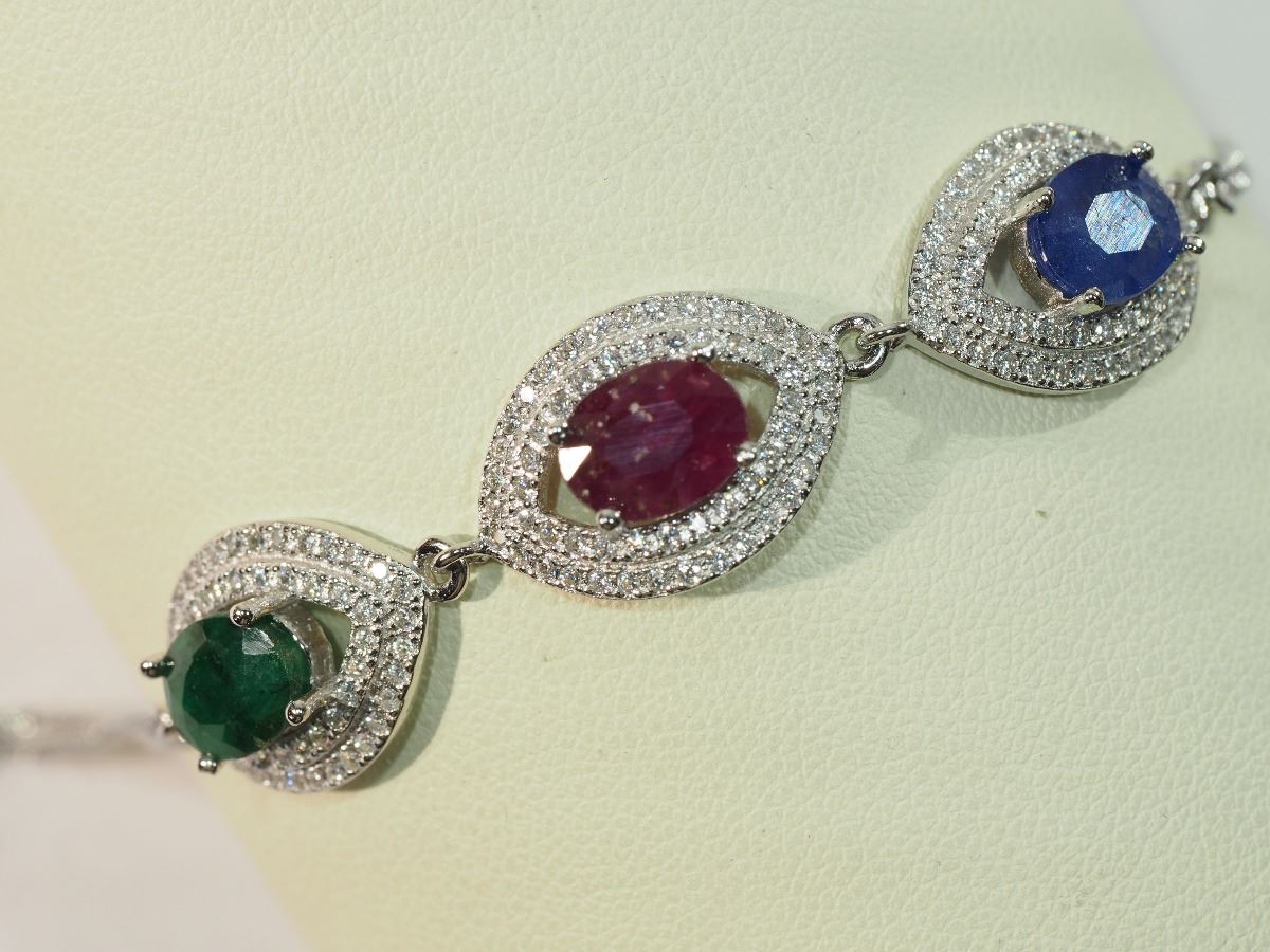 #7-STERLING SILVER ENHANCED RUBY, EMERALD AND