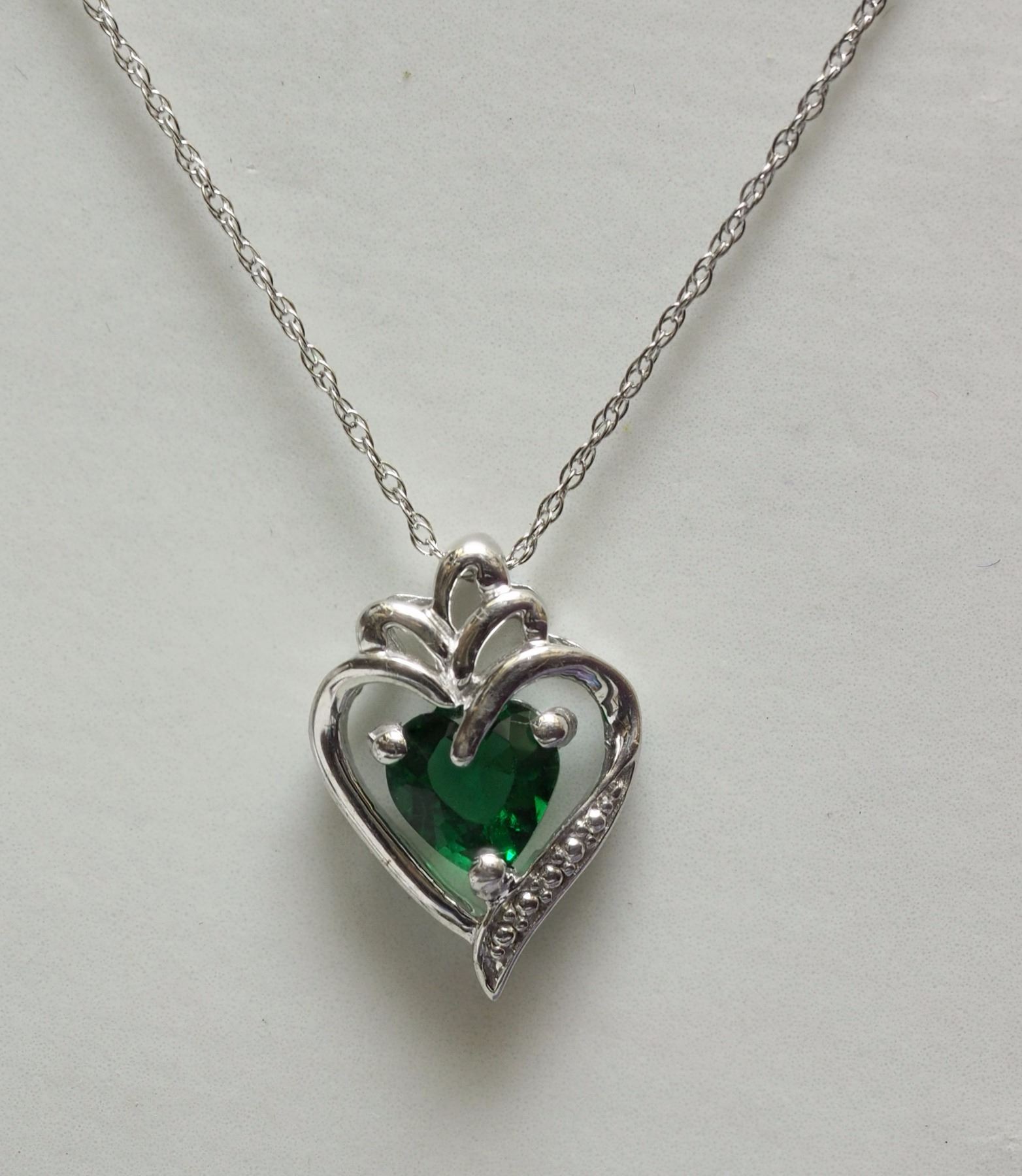 #7-STERLING SILVER SIMULATED EMERALD HEART