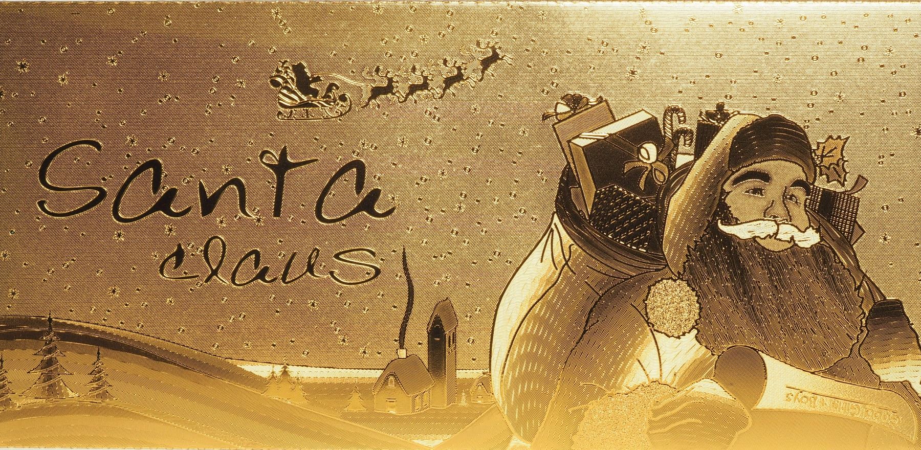 7-NT58- SET OF TEN 24K YELLOW GOLD FOIL SANTA CLAUS CHRISTMAS ENVELOPES. COLLECTIBLES.