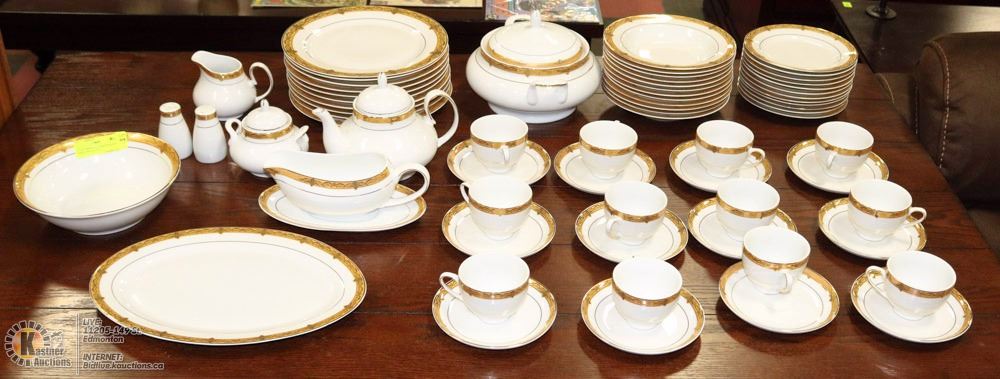 10 PLACE PLATE SETTING, GRAVY BOAT, SALT AND PEPPER SHAKERS, SOUP TUREEN, COFFEE/TEA POT AND MORE. HOME