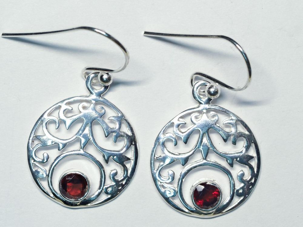 70 - JM37 - STERLING SILVER GARNET EARRINGS. JEWELRY