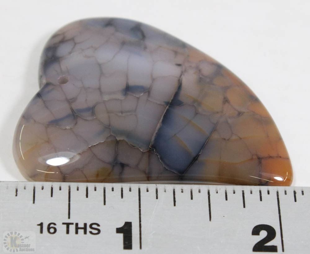 71) GRAY ORANGE HEART SHAPE AGATE PENDANT 131CT