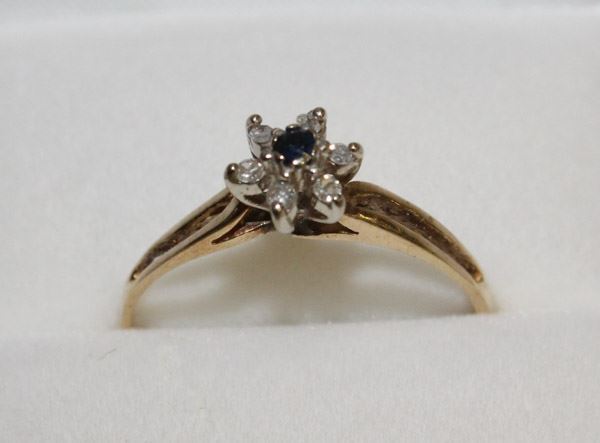 #72  10KT GOLD DIAMOND AND SAPPHIRE RING