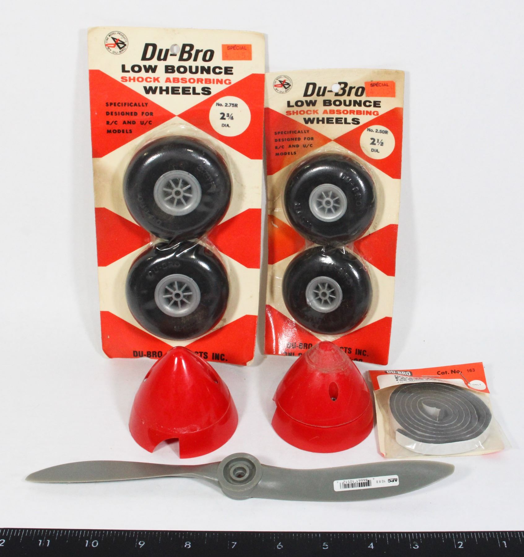 Lot of Sealed NOS Wheels, as well as additional used propeller + nosecones -From Large Scale Model Railroad Collection including New Old Stock Trains, Sealed Sets and Accessories