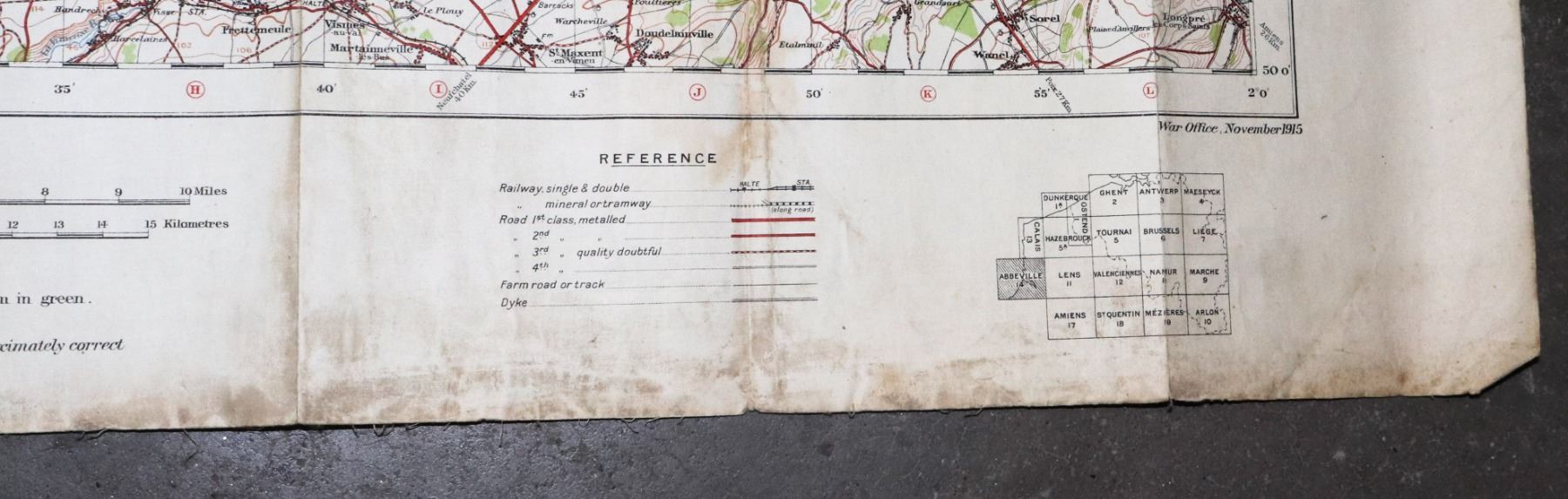 COASTAL ABBEVILLE 13 WW1 BRITISH MILITARY MAP FRANCE 1915 33X28