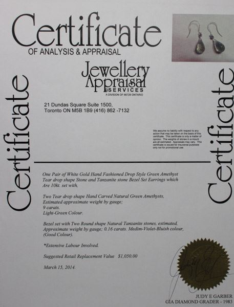 #75 10K GOLD GREEN AMETHYST & TANZANITE EARRINGS