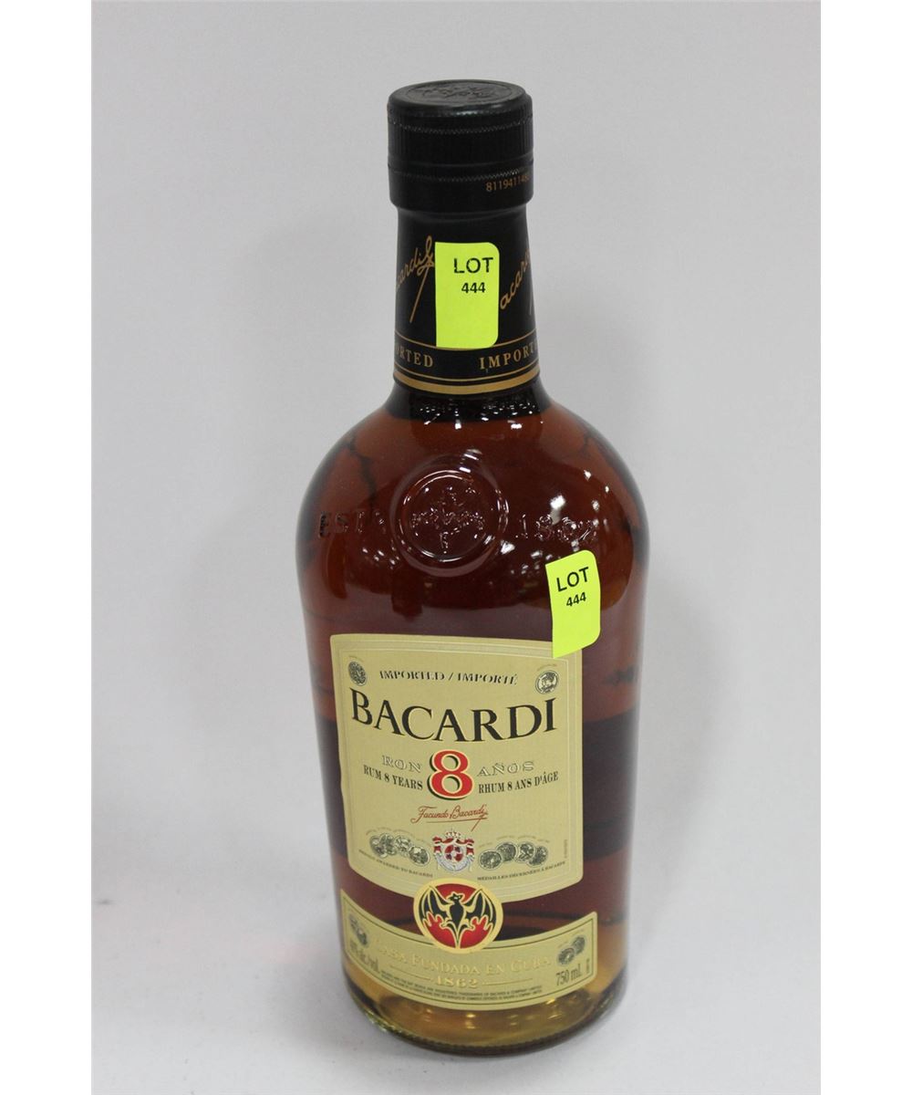 750ML BOTTLE OF BACARDI 8 YEAR RUM 40%