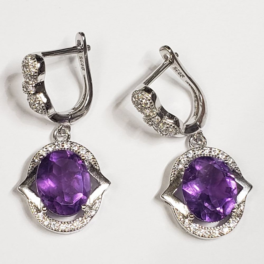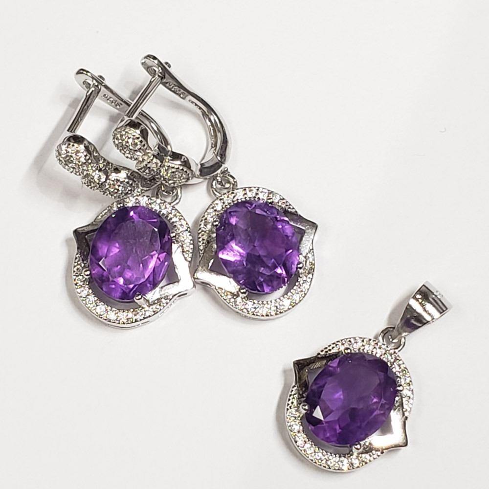176 - JT36 - STERLING SILVER AMETHYST CUBIC ZIRCONIA EARRING AND PENDANT SET (~WEIGHT 8G). JEWELRY