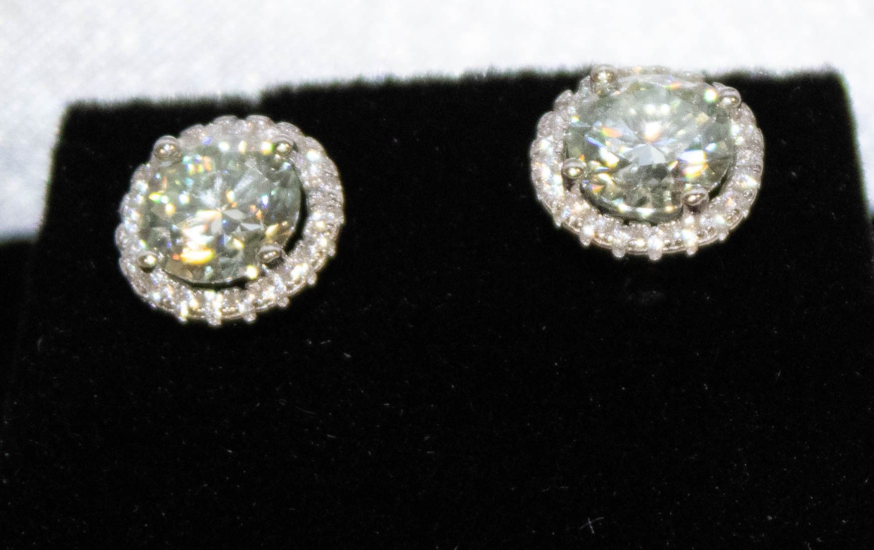 WEIGHING APPROXIMATELY 1.00 CARAT EACH SET IN 925 STERLING SILVER WITH A HALO WITH 40 STONES AND SCREW BACK