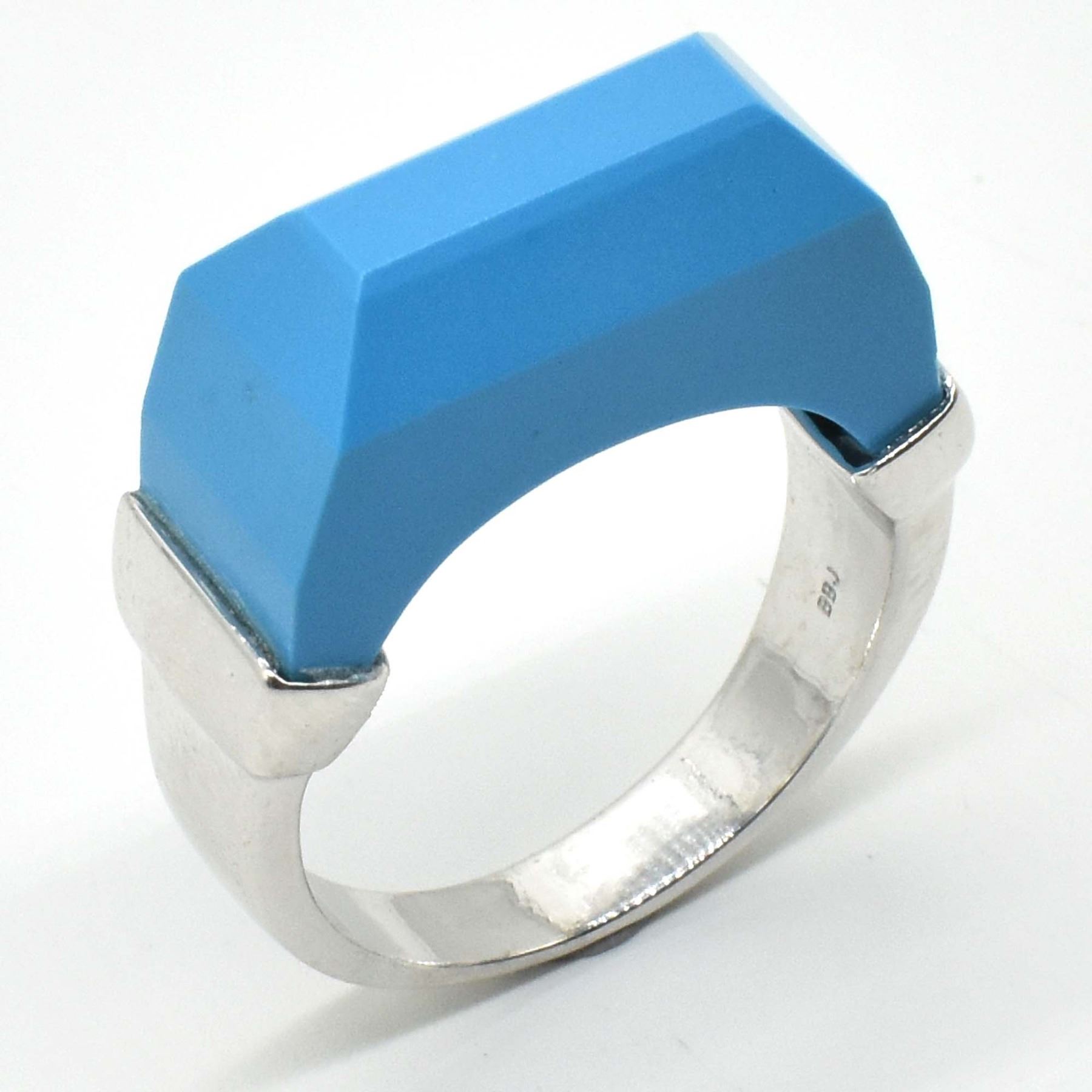 SILVER TURQUOISE MEN MADE(13.5CT) RHODIUM PLATED RING (~WEIGHT 6.65G)