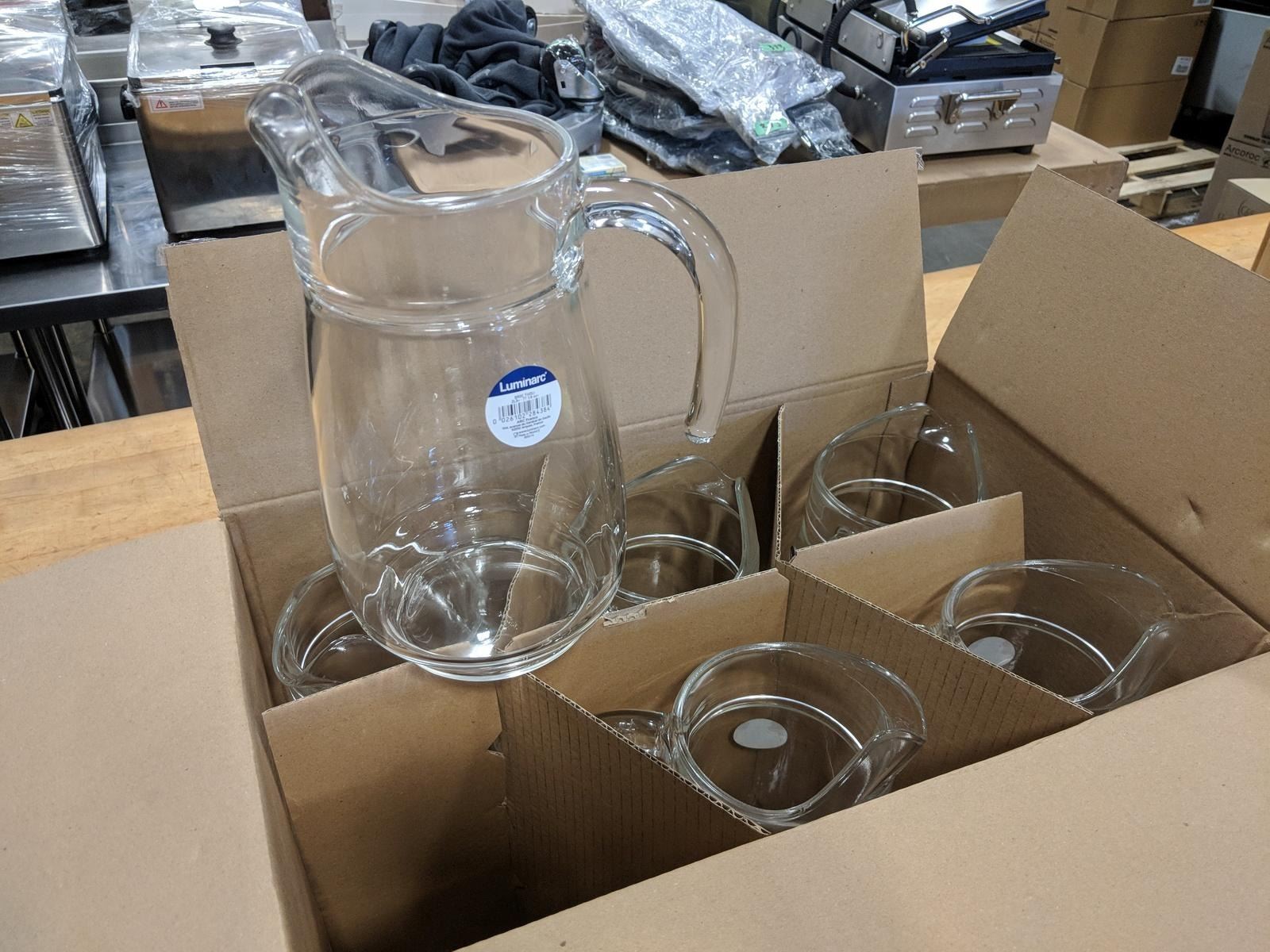 K645-J632 NEW 77.5OZ/2.3L TIVOLI GLASS PITCHERS - LOT OF 6 (1 CASE), LUMINARC 28438