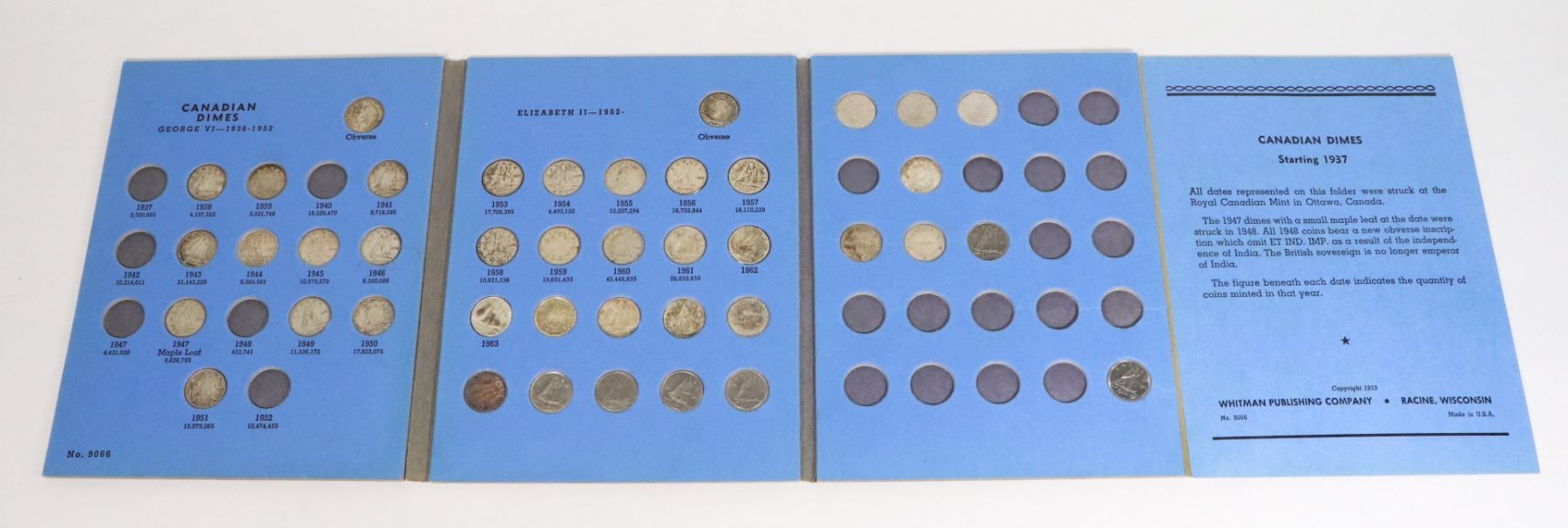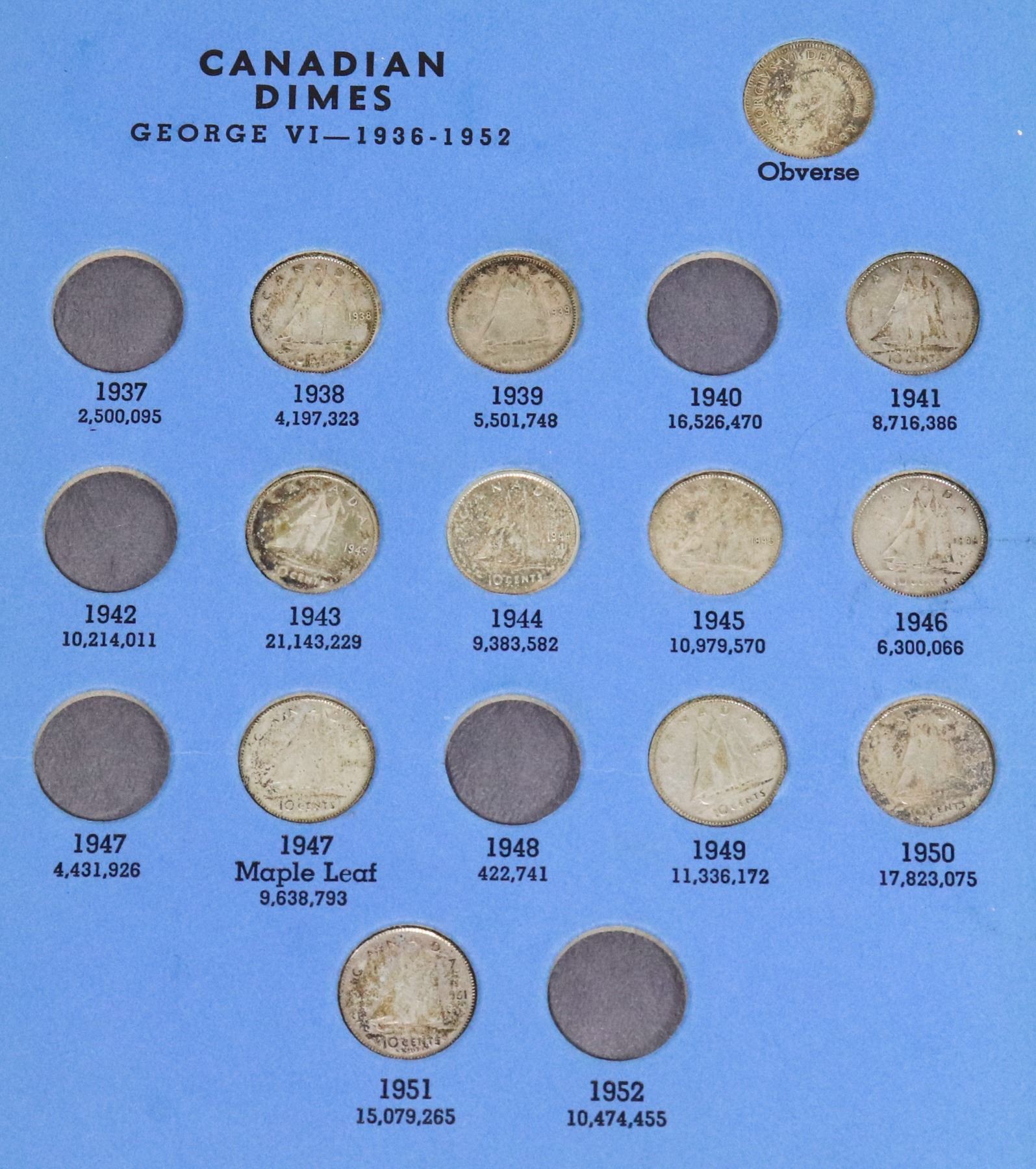 NO. 9066 COLLECTION NO. 2 1937 TO DATE 44 SILVER DIMES TOTAL COINS VINTAGE CURRENCY