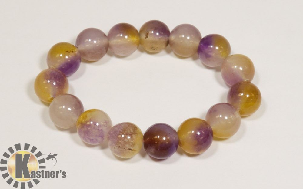#77-YELLOW,PURPLE BEAD BRACELET 13mm/7.5"