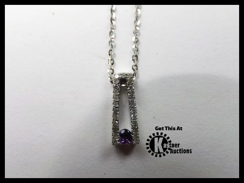 PENDANT W/ CHAIN, 1=.07cts. AMETHYST, ROUND CUT, SIDE DIAMONDS 25=.10cts. T.W. ROUND BRILLIANT CUT, I1 CLARITY, H COLOR, APPRAISAL, RETAIL VALUE $275.00