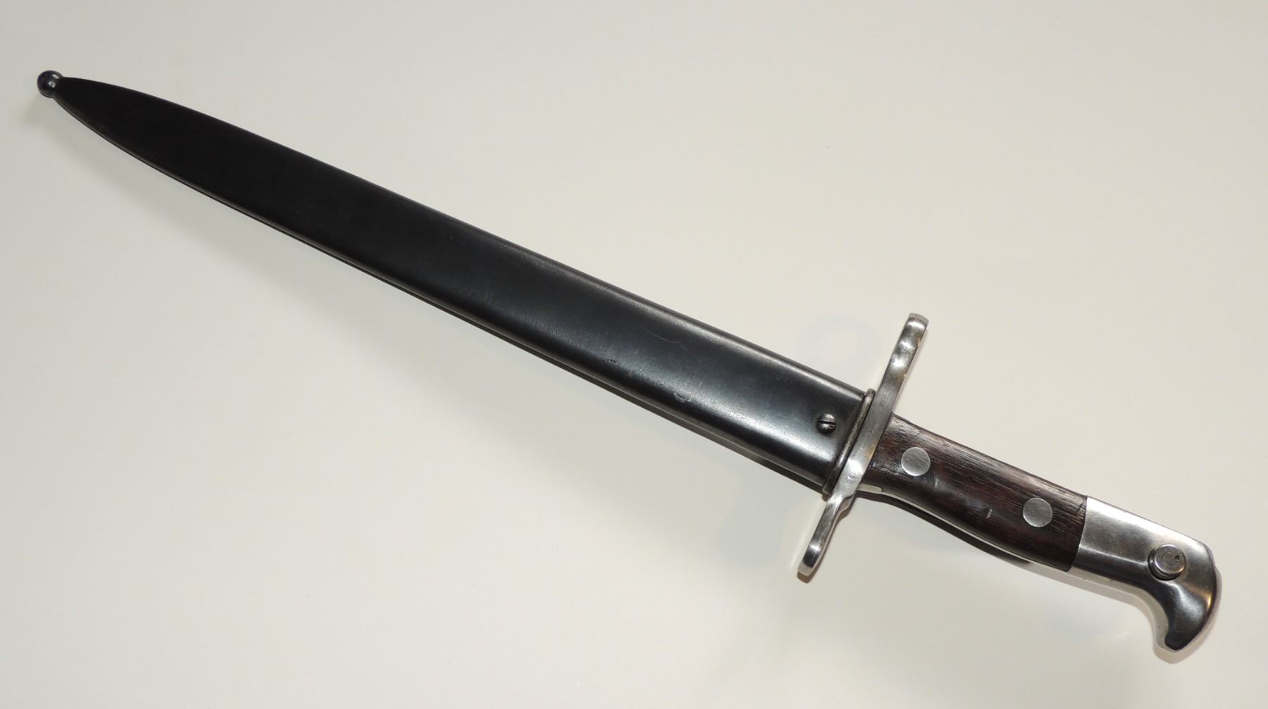 17.5 INCHES LONG BAYONET W/ SCABBARD DESIGNED FOR SCHMIDT RUBEN 1886/1896 AND M1911 SWITZERLAND EUROPE EUROPEAN ARMY MILITARY FORCES
