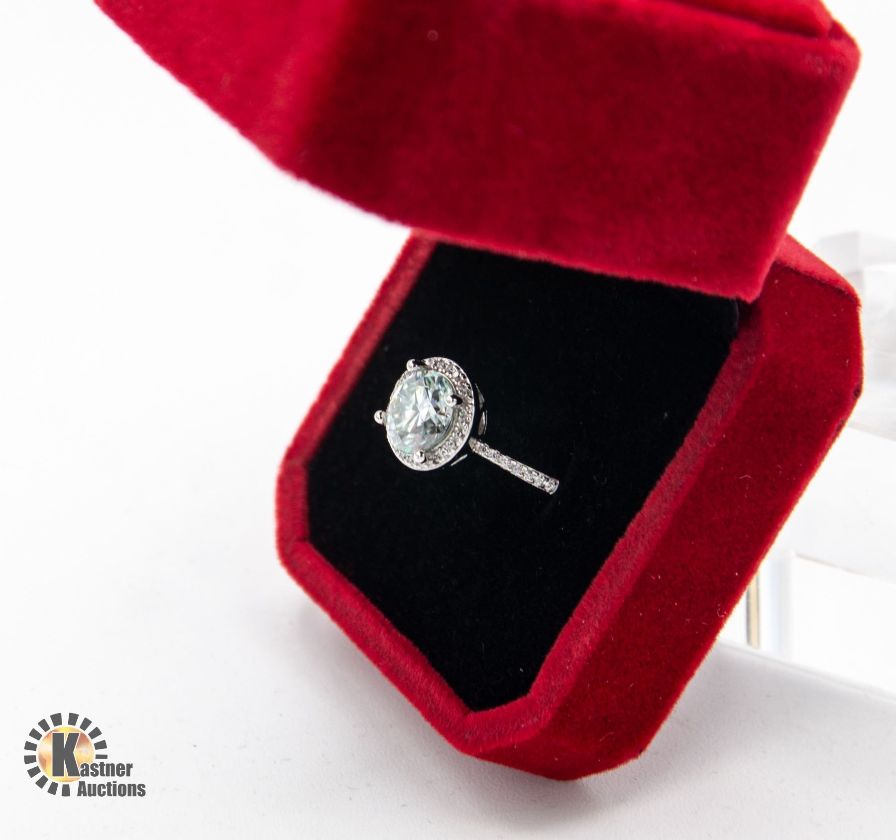 CENTER SURROUNDED BY 34 ROUND CZ SET IN A ROUND HALO WITH MORE CZS IN SHANK 0.35 CT TW RING SIZE ADJUSTABLE IN STERLING SILVER RING SIZE ADJUSTABLE RETAIL VALUE $1,150.00
