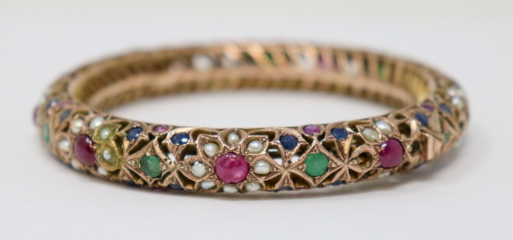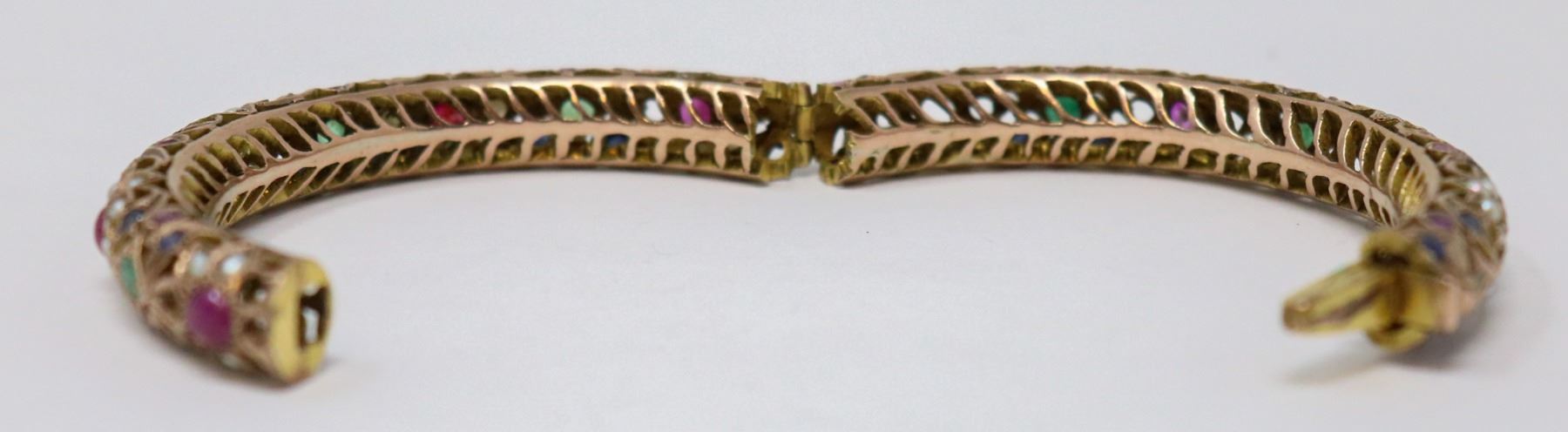 7K GOLD BANGLE WITH NATURAL RUBIES,
