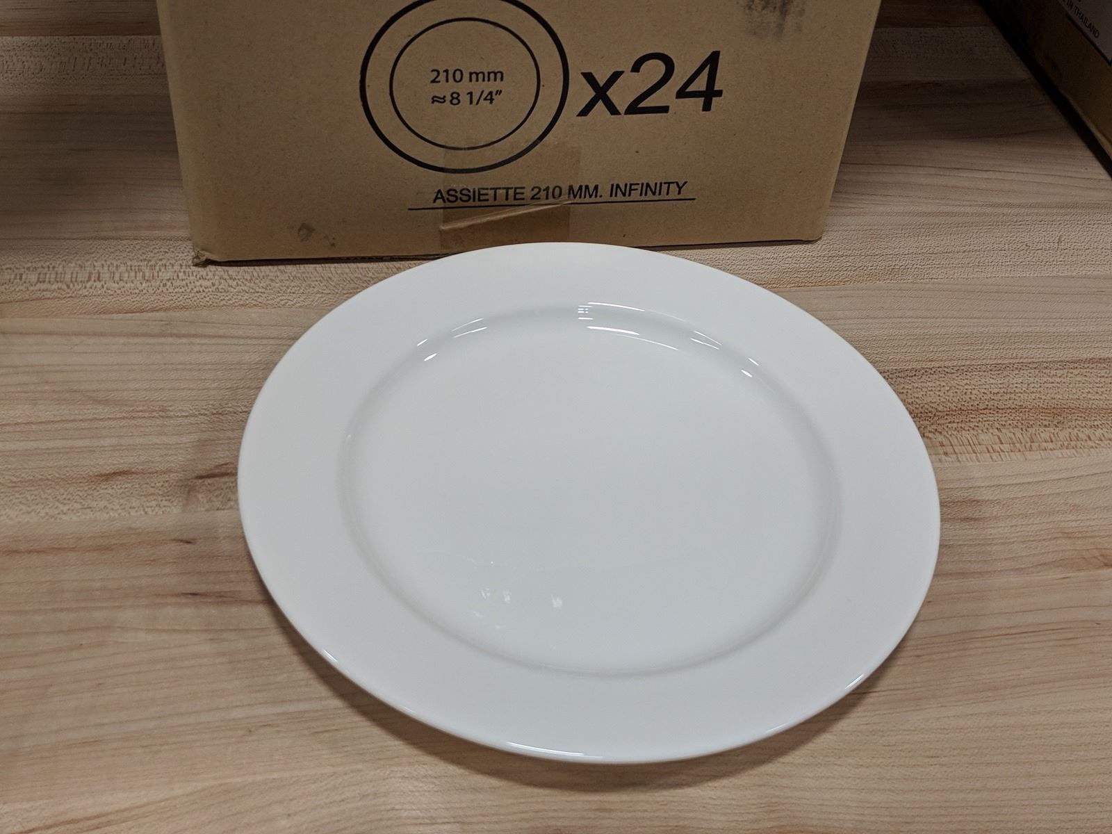 K285-J253 NEW 8-1/4" WHITE PORCELAIN PLATES, ARCOROC "INFINITY" R1004 - LOT OF 24