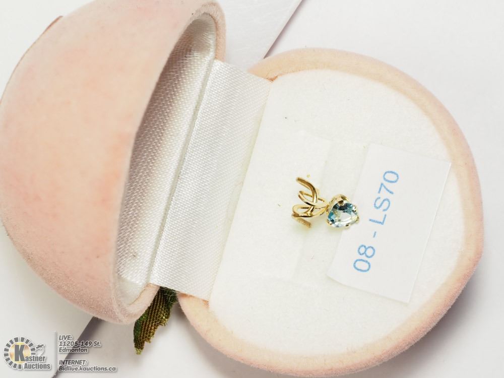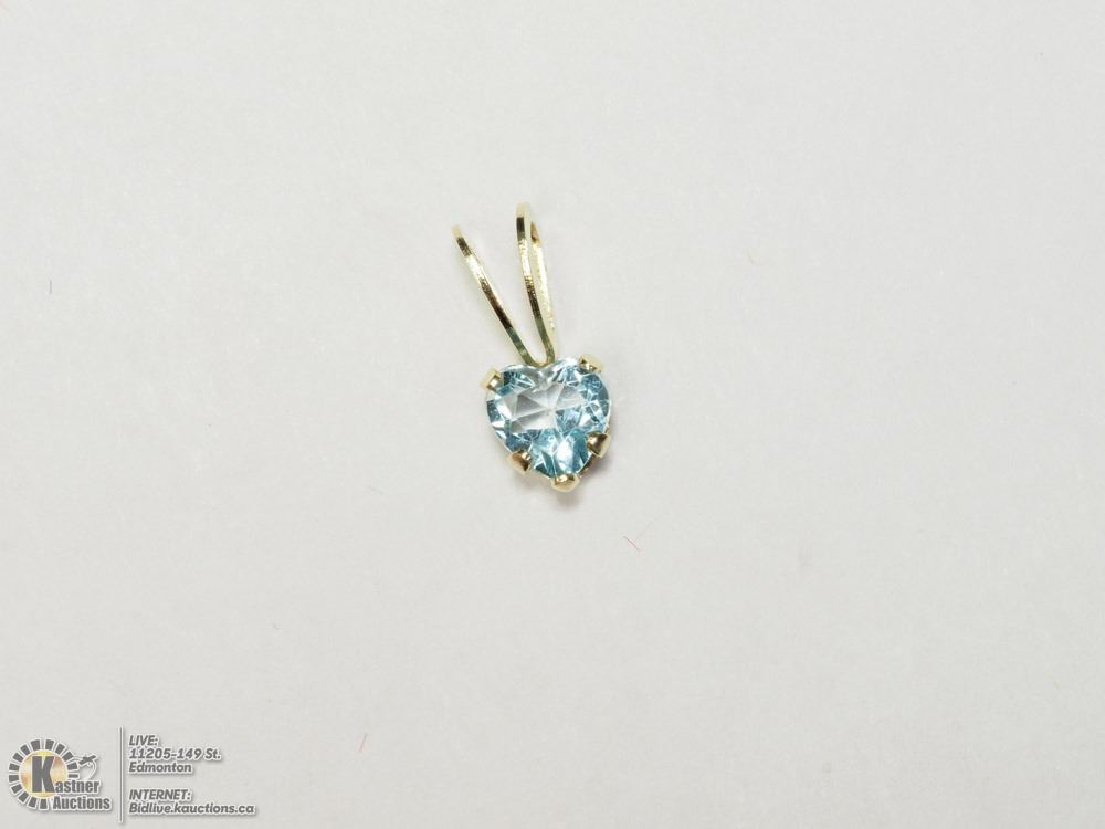 8-LS70 - 14KT GOLD AQUAMARINE HEART SHAPED PENDANT. JEWELRY