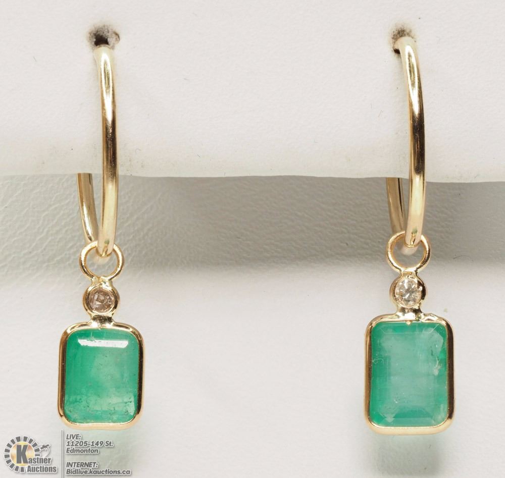 08 - GS11; 14KT YELLOW GOLD EMERALD (1.90CT) & DIAMOND (0.08CT) EARRINGS W/ COA - SUGGESTED REPLACEMENT VALUE $1,891.00