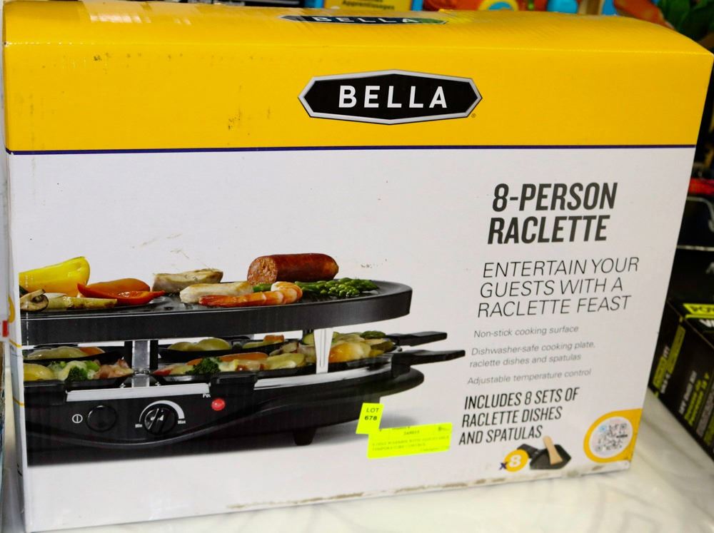 COMES WITH 8 RACLETTE DISHES AND WOODEN SPATULA. ITS DISHWASHER SAFE