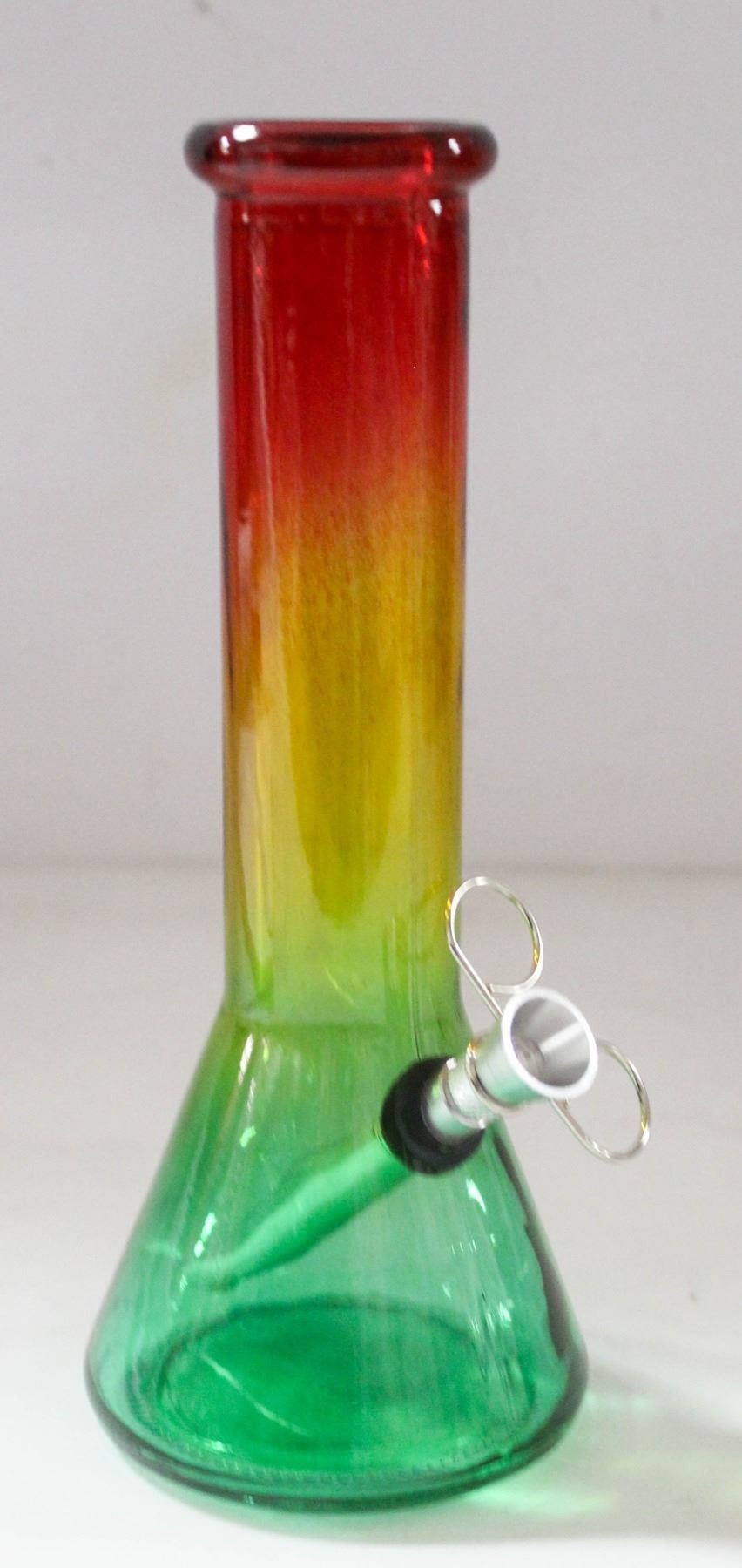 8" GLASS BEAKER BONG 5MM THICK RASTA
