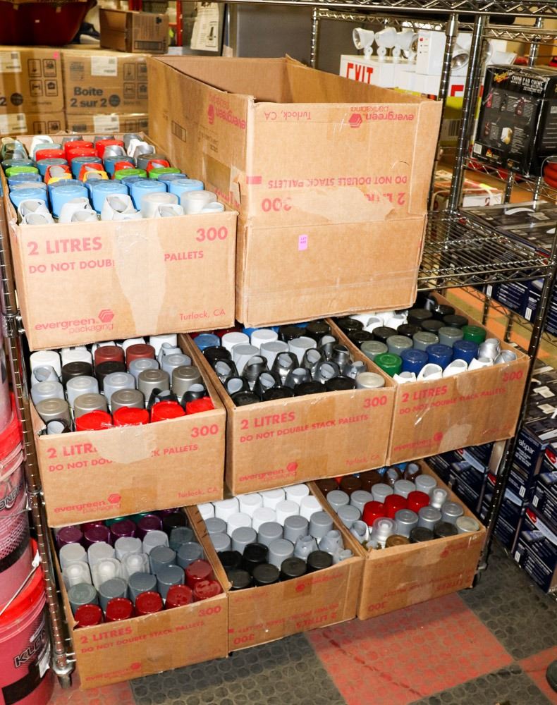 8 LARGE BOXES OF NEW ASSORTED SPRAY PAINT.