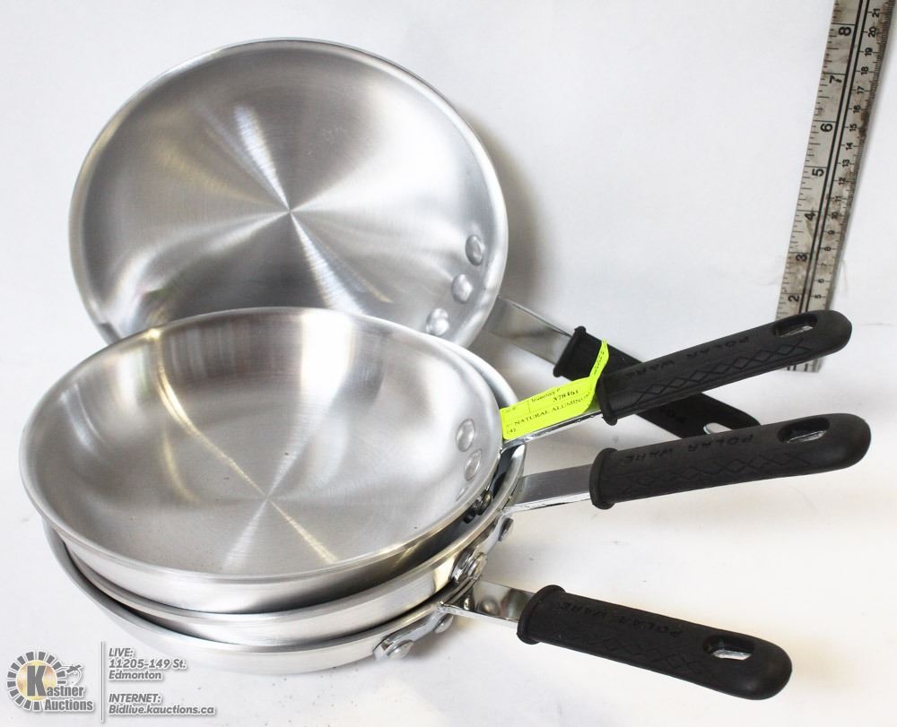 NEW NATURAL ALUMINUM FRY PANS - LOT OF 4