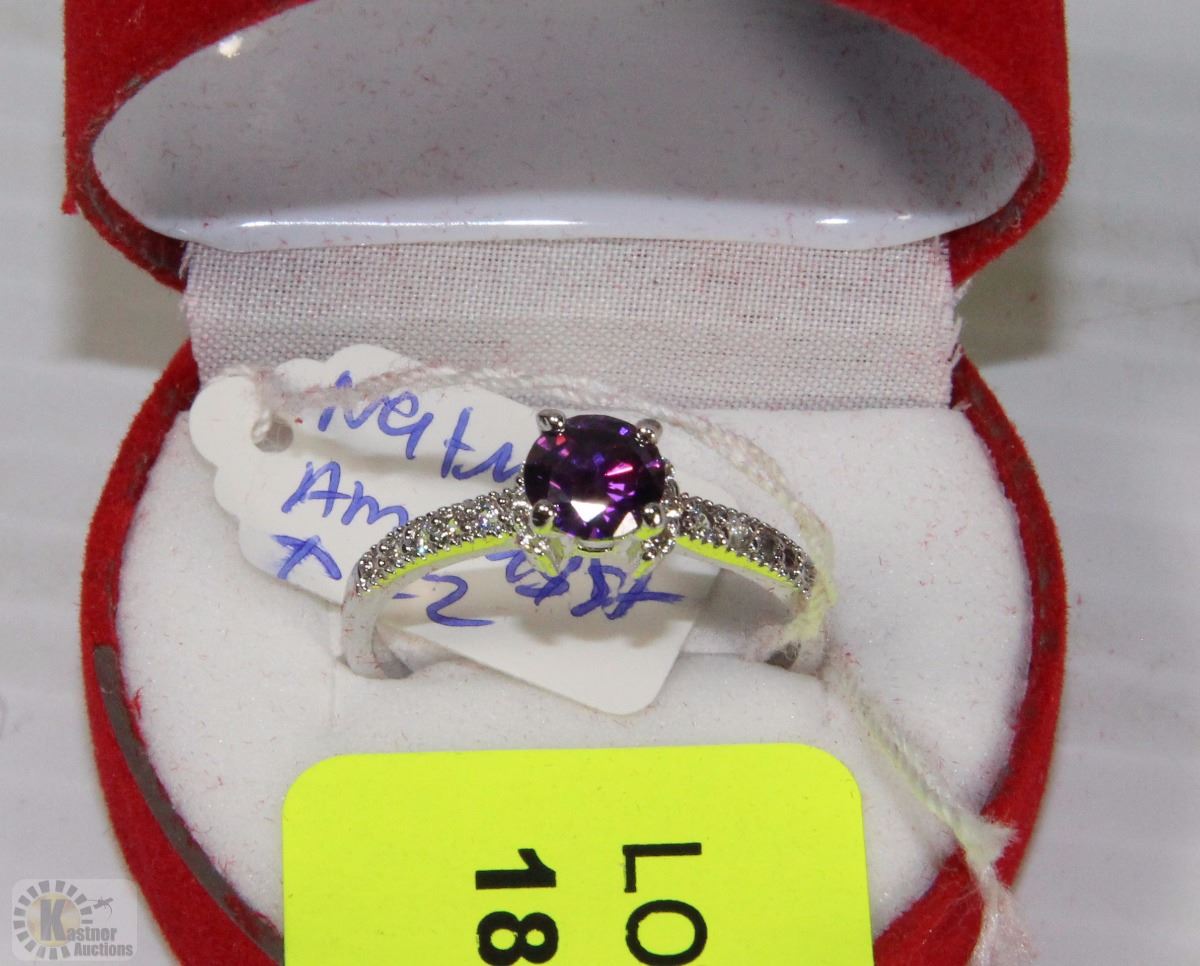 #8)NATURAL AMETHYST & CZ RING .925 SILVER SIZE 9