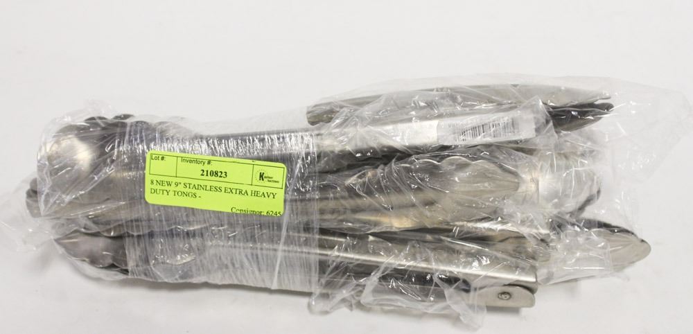 9" STAINLESS EXTRA HEAVY DUTY TONGS - LOT OF 8 NEW - AS THEY COME IN CATALOGUE ORDER