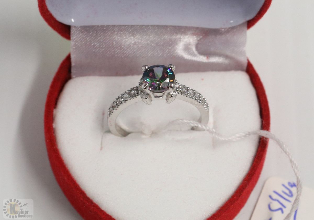 8)RAINBOW MYSTIC & CZ .925 SILVER RING SIZE 5
