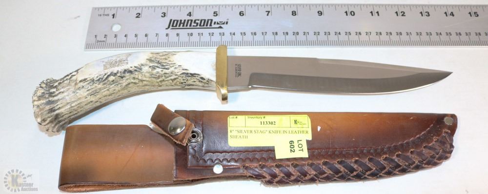 8" SILVER STAG KNIFE IN LEATHER SHEATH
