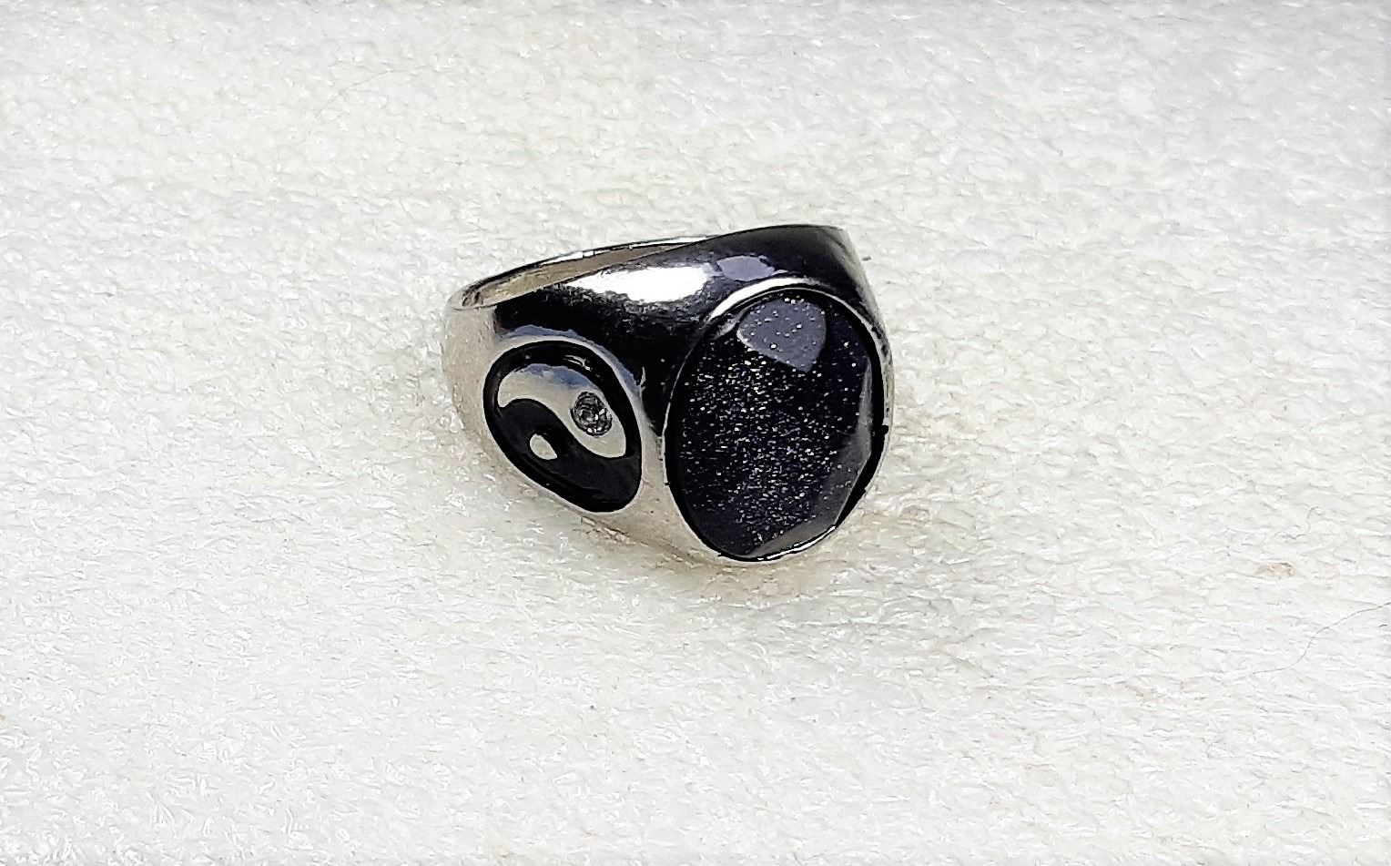 STONE RING, WITH YING/YANG SYMBOLS ON SHOULDERS, SIZE 11. JEWELLERY