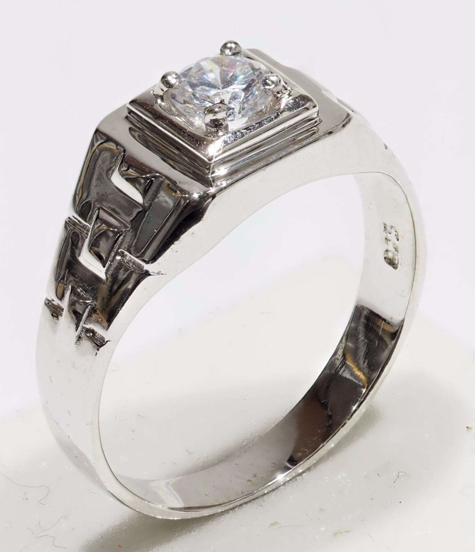 #8-STERLING SILVER CUBIC ZIRCONIA MEN'S RING