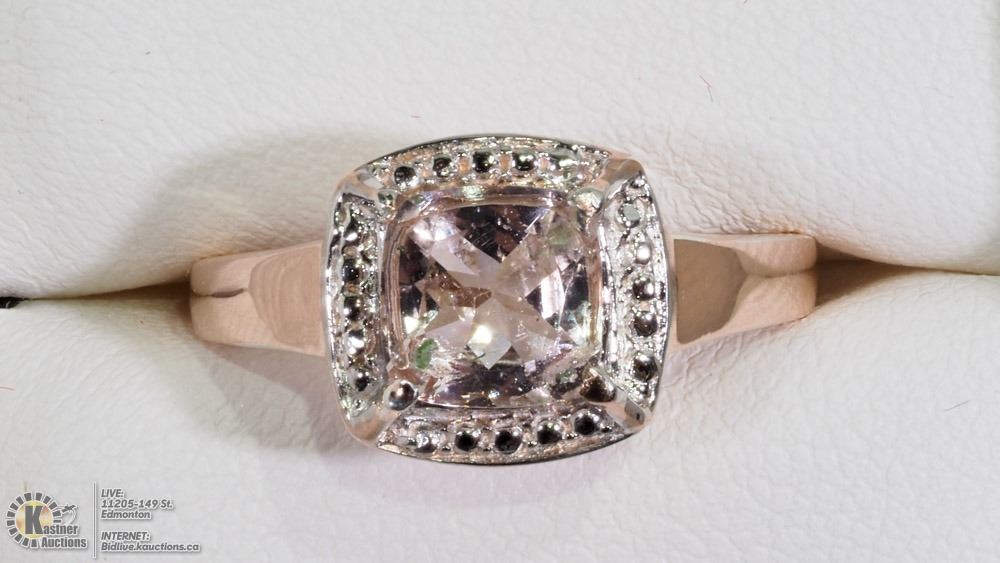 MS18 - 8- STERLING SILVER ROSE GOLD MORGANITE RING SIZE 7. JEWELRY