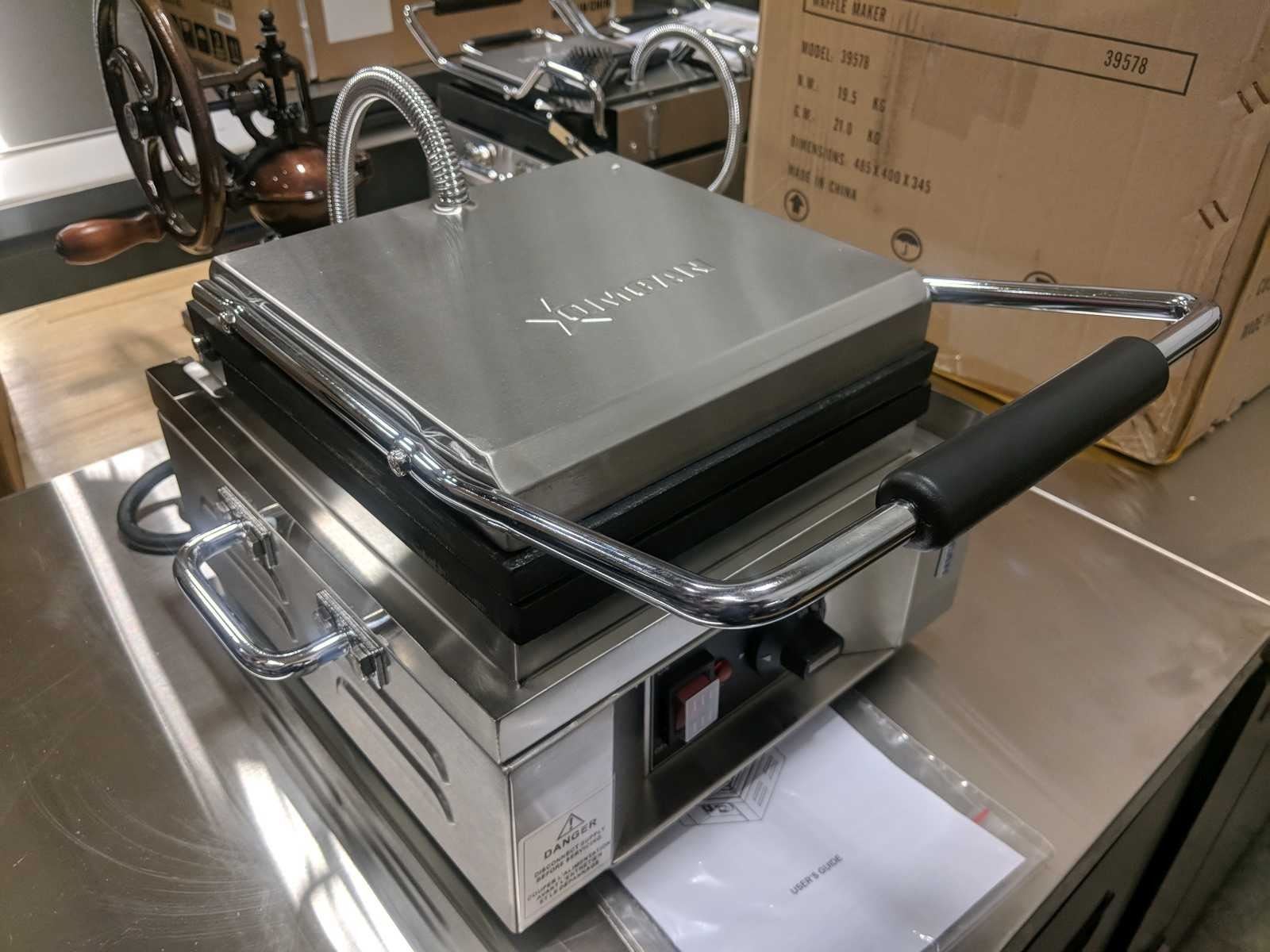 K177 NEW 8" X 8" CAST IRON BELGIUM WAFFLE MAKER, 120V, OMCAN 39578