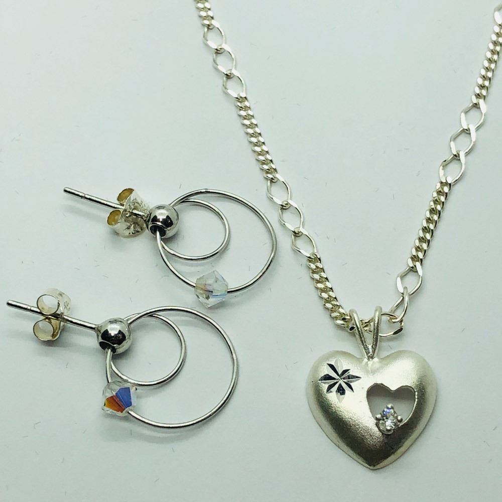 80 - JP346 - STERLING SILVER EARRINGS AND PENDANT NECKLACE SET. JEWELRY