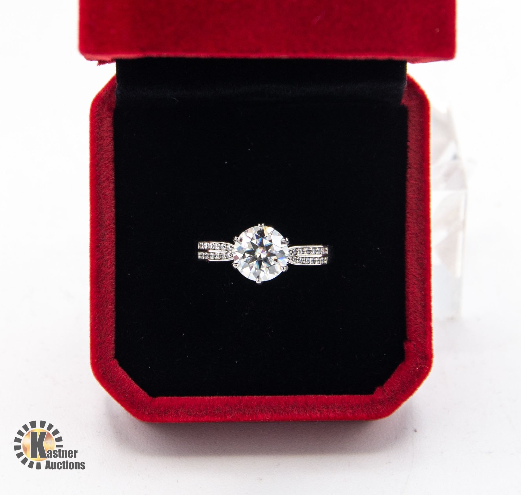 SET IN 6 CLAW HEAD WITH 13 CZ SET IN EACH SHANK IN 2 ROWS WEIGHING A TOTAL 0.10 CT SET IN STERLING SILVER RING SIZE ADJUSTABLE