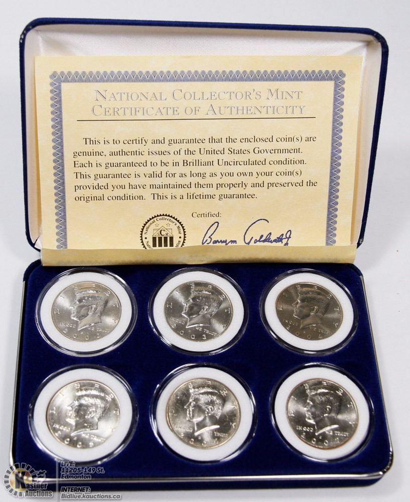 81) SET OF 6 US JFK HALF DOLLAR COIN SET 2001-2007