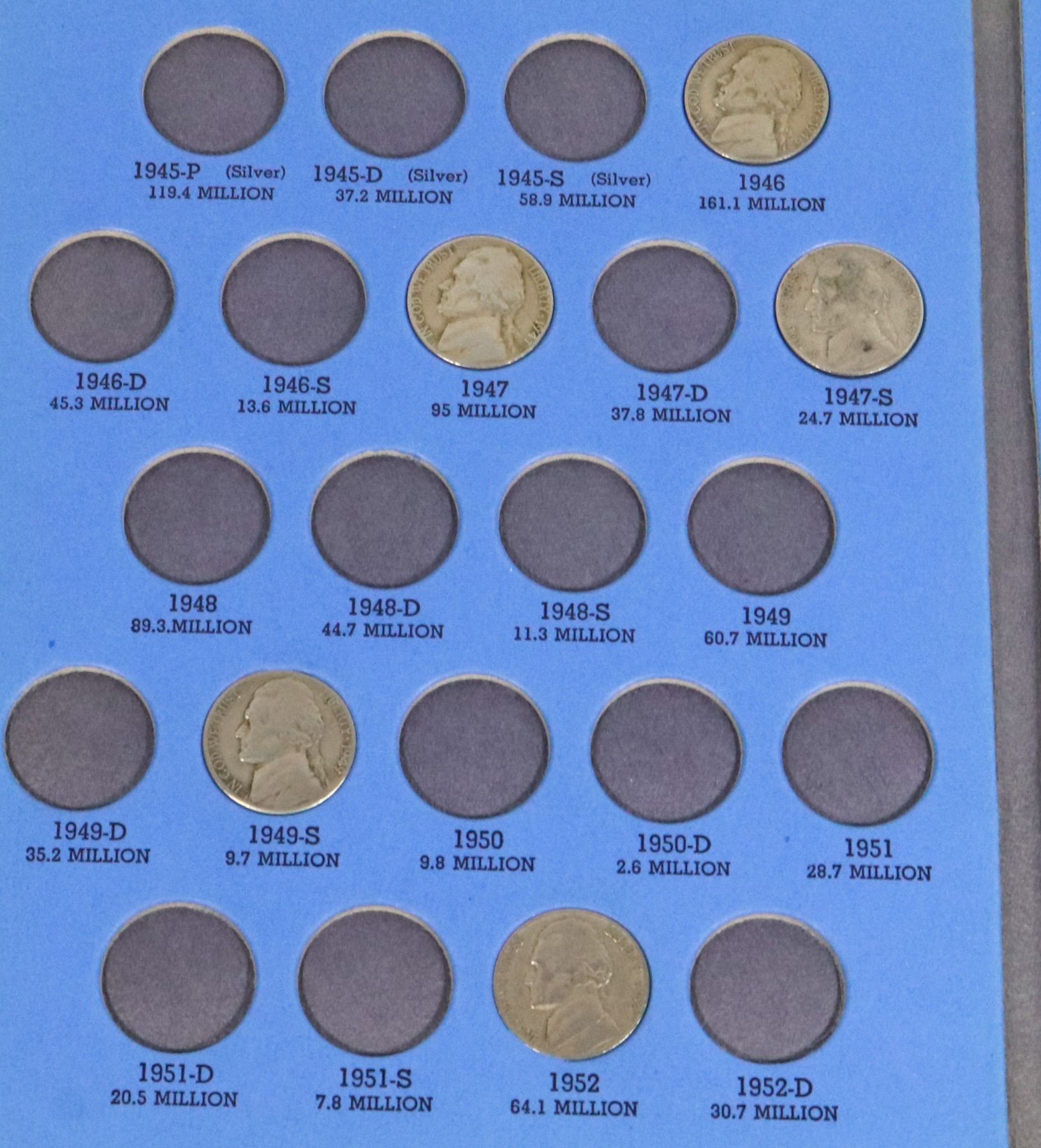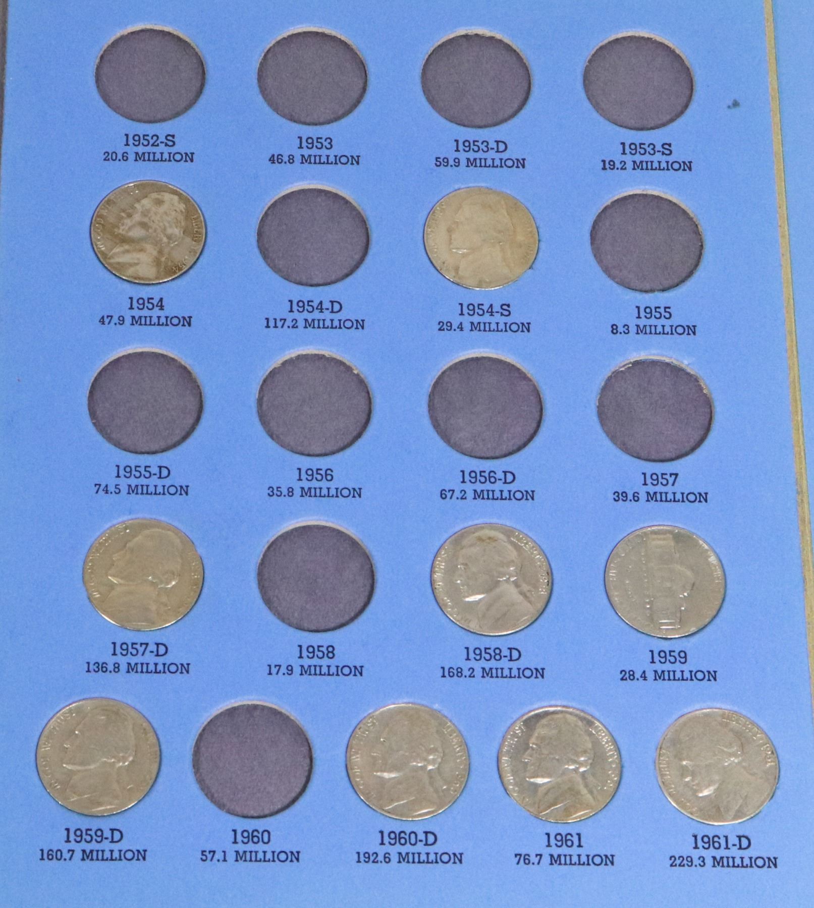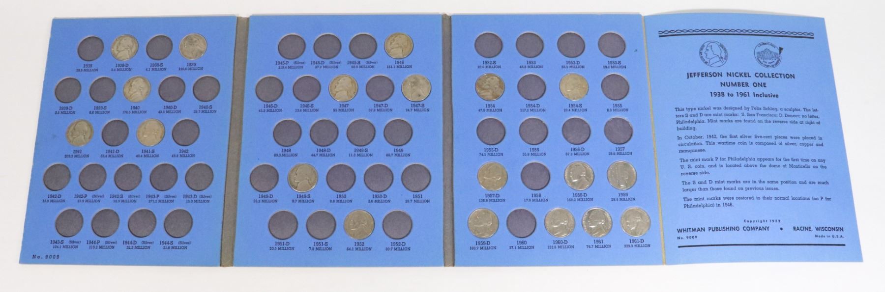 NO. 9009 JEFFERSON NICKEL COLLECTION 1938 TO 1961 NUMBER ONE 19 TOTAL COINS USA US UNITED STATES OF AMERICA VINTAGE CURRENCY