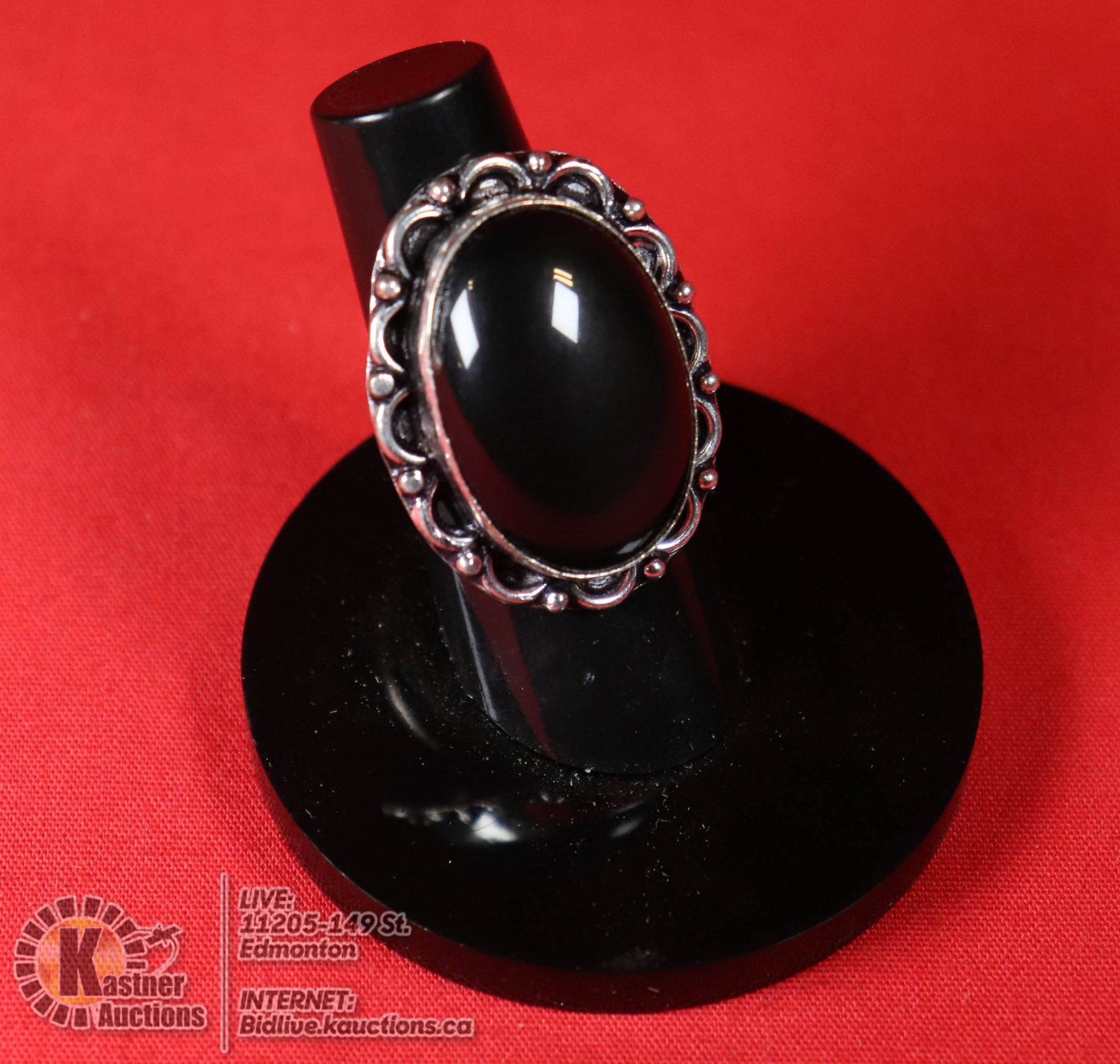 #82-NATURAL BLACK OBSIDIAN RING SIZE 6