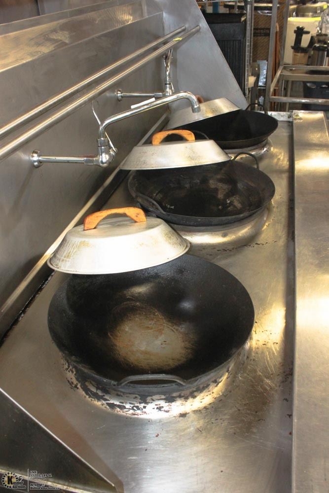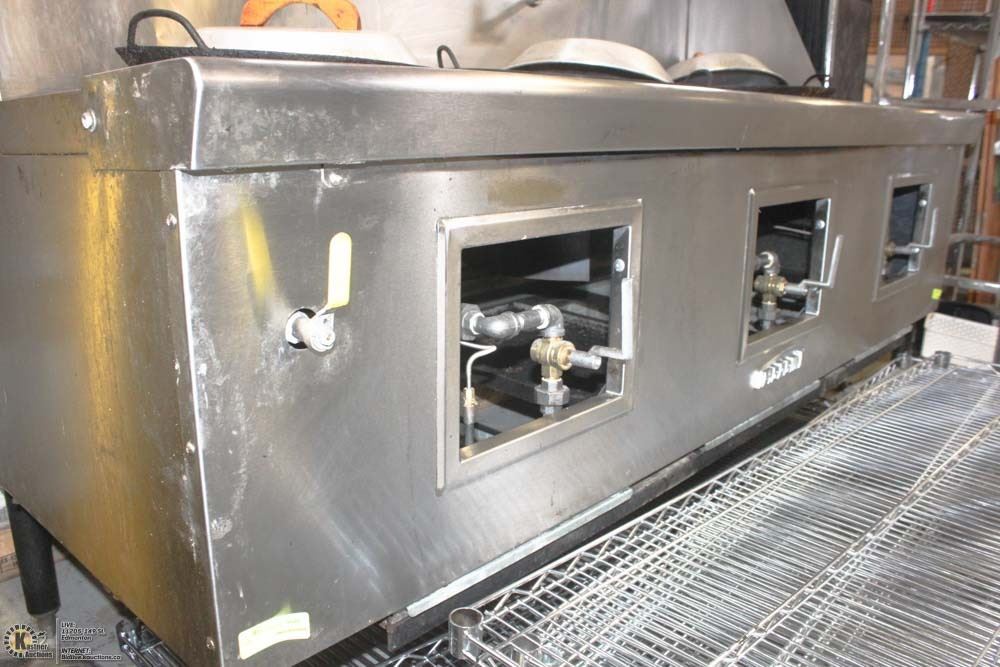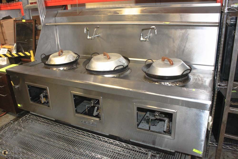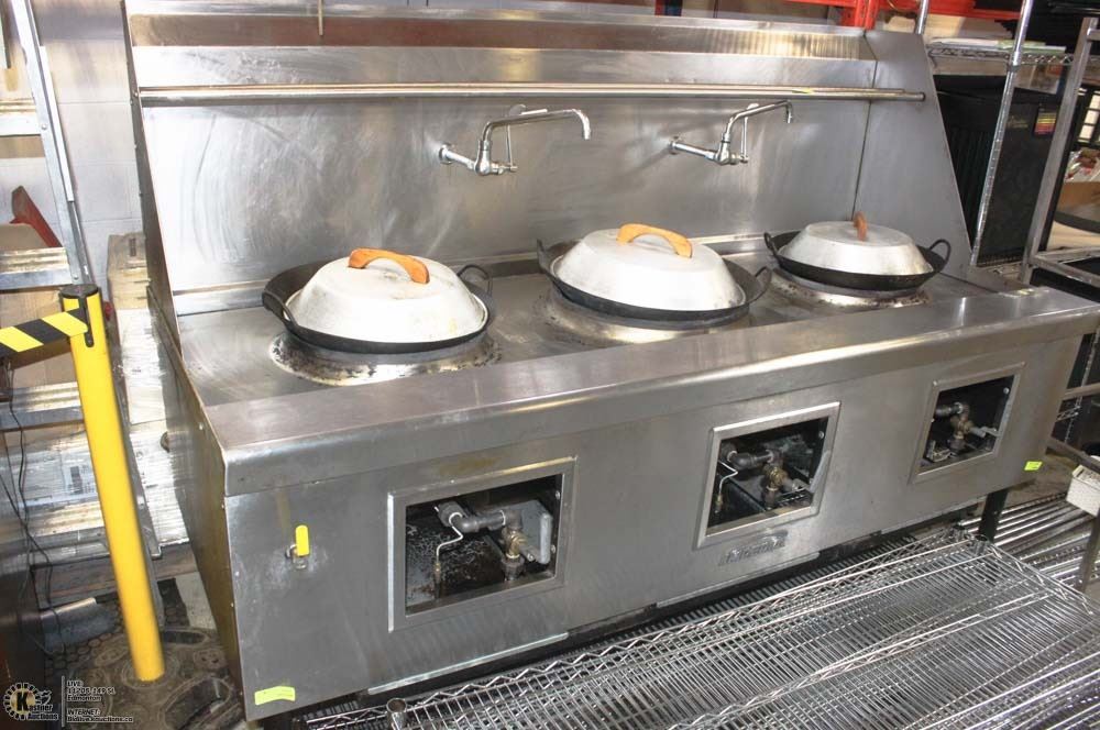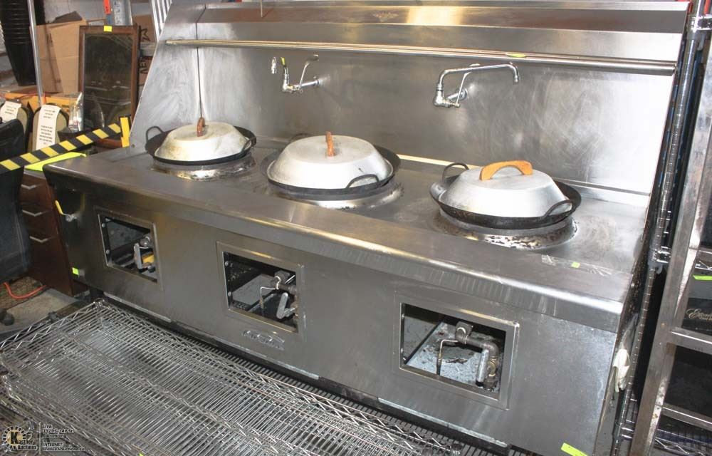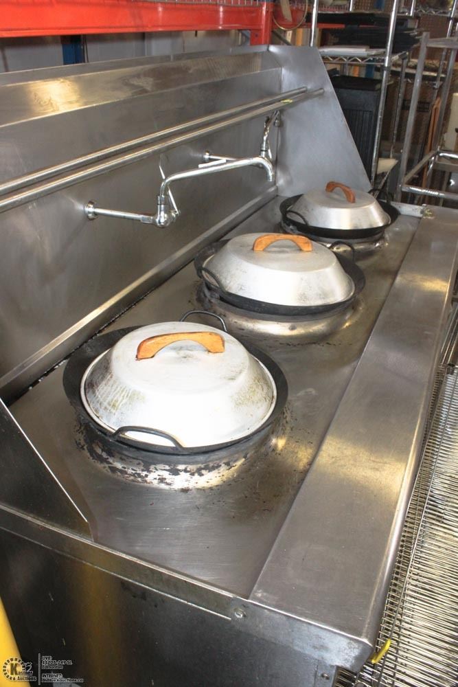 3 BURNERS, WATER COOLED TOP, BUILT IN DRAIN SYSTEM, CHINESE SWING FAUCET, KNEE "L" LEVER GAS VALVE HANDLE , 24" HEIGHT FLU RISER, STAINLESS STEEL FRONT,LANDING LEDGE, & PIPE RACK 12-3/4" LEGS, ADJUSTABLE FEET,STANDARD NATURAL GAS. #BAILIFF SEIZURE# APPROX 1 YEAR OLD # ORIGINAL PURCHASE PRICE 2017 #15,729.00