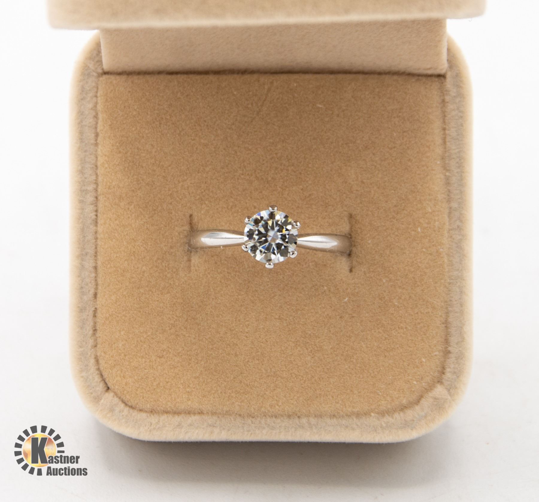 ROUND BRILLIANT MOISSANITE SET IN STERLING SILVER RING WITH 6 CLAW HEAD RING SIZE 7