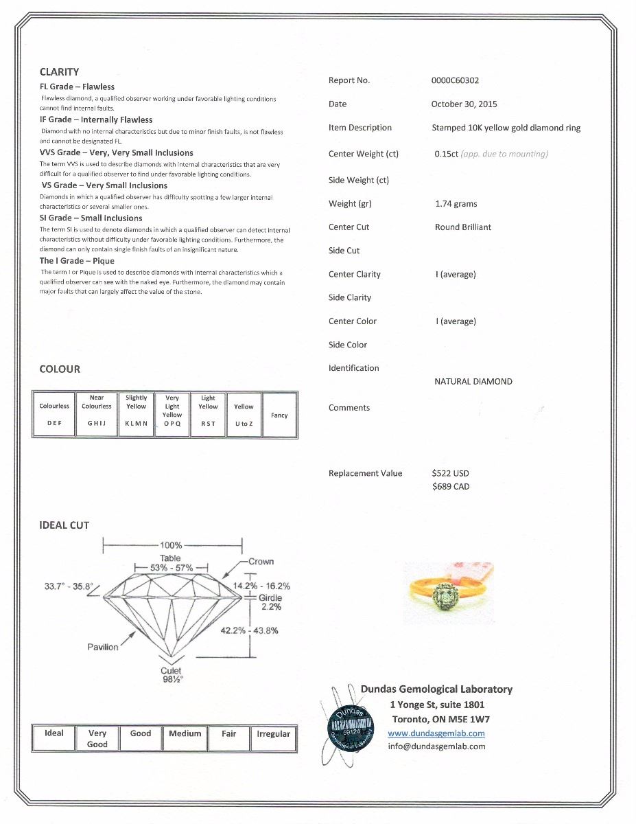 W/COA - SUGGESTED REPLACEMENT VALUE $689.00