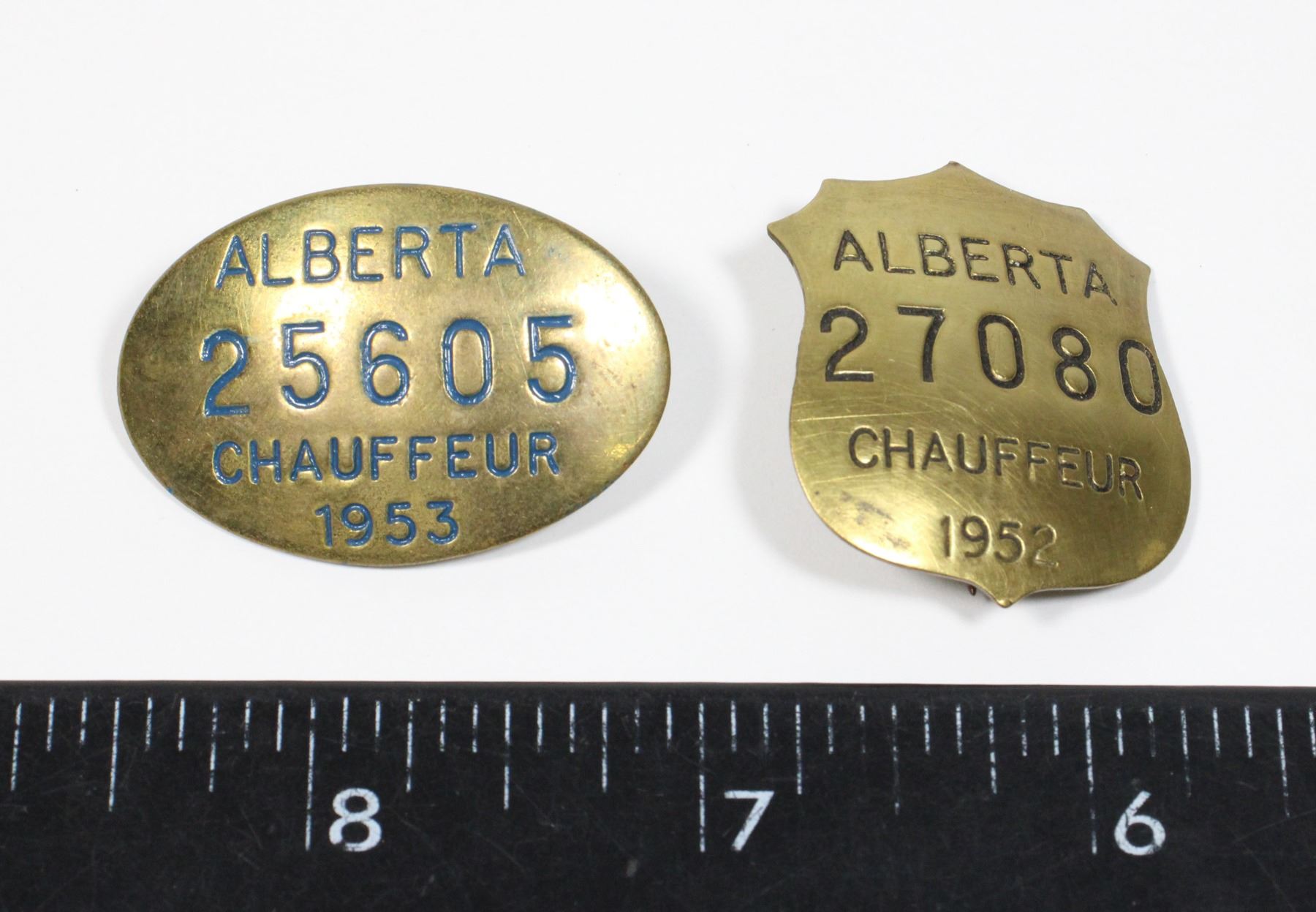 LOT OF 2 BARNARD MARKED ON REVERSE AUTOMOTIVE MEMORABILIA 1900'S 20TH CENTURY CANADA CANADIAN SHIELD SHAPED BADGE