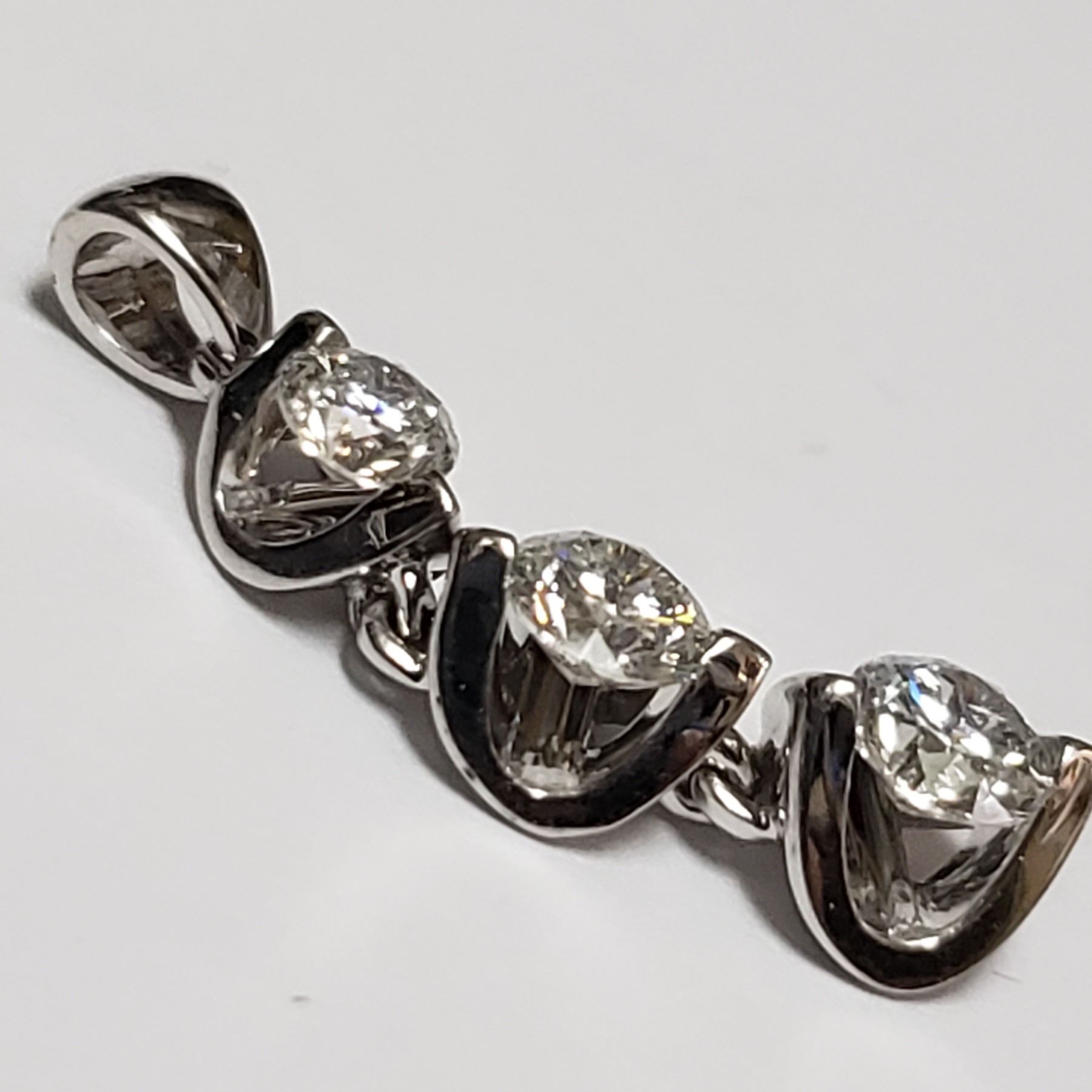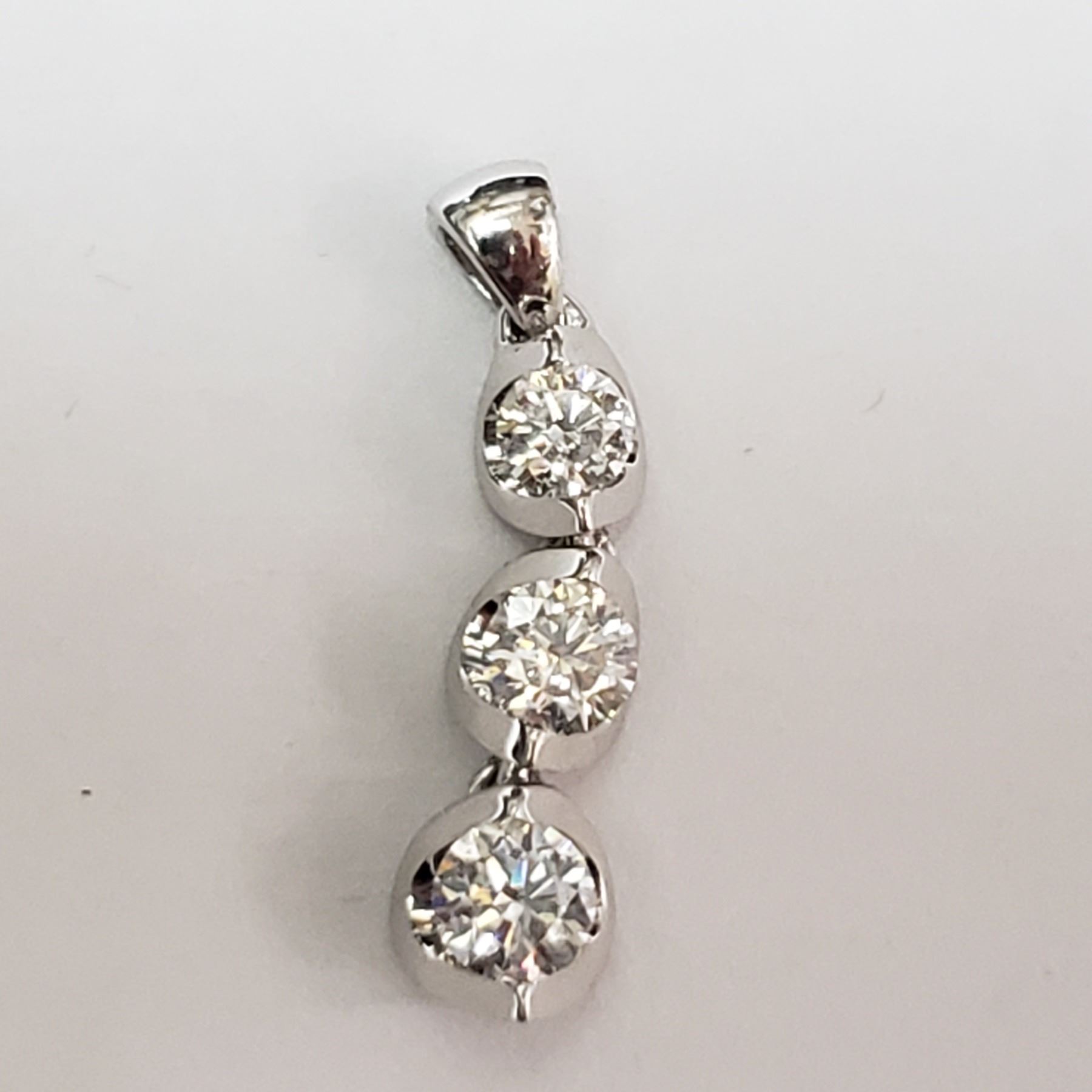 THE CONTEMPORARY GRADUATED TWO PRONG PENDANT SETTINGS SECURE THREE ROUND BRILLIANT CUT DIAMONDS (MEASURING 3.14, 3.61, 3.72 MM, CLARITY GRADE I 1-2, COLOUR GRADE F-G, CUT GRADE VERY GOOD, CARAT WEIGHT TOTAL 0.50 CARAT) THE GIRDLES OF THE DIAMONDS ARE LASER INSCRIBED, CD 7-162486.87.88. TOTAL WEIGHT 1.00 GRAMS) COMES WITH CERTIFICATE OF APPRAISAL FROM LOCAL APPRAISER, SUGGESTED INSURANCE COVERAGE $1600.00. JEWELLERY