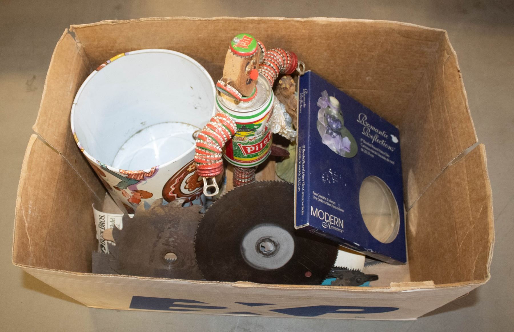 COLLECTION VIVIAN ANGEL OF GRACE SOLD WITH VINTAGE PILSNER BOTTLE CAP FIGURE, COOKIE TIN, LOT OF TOOLS AND BEVELLED ROUND MIRROR TILES